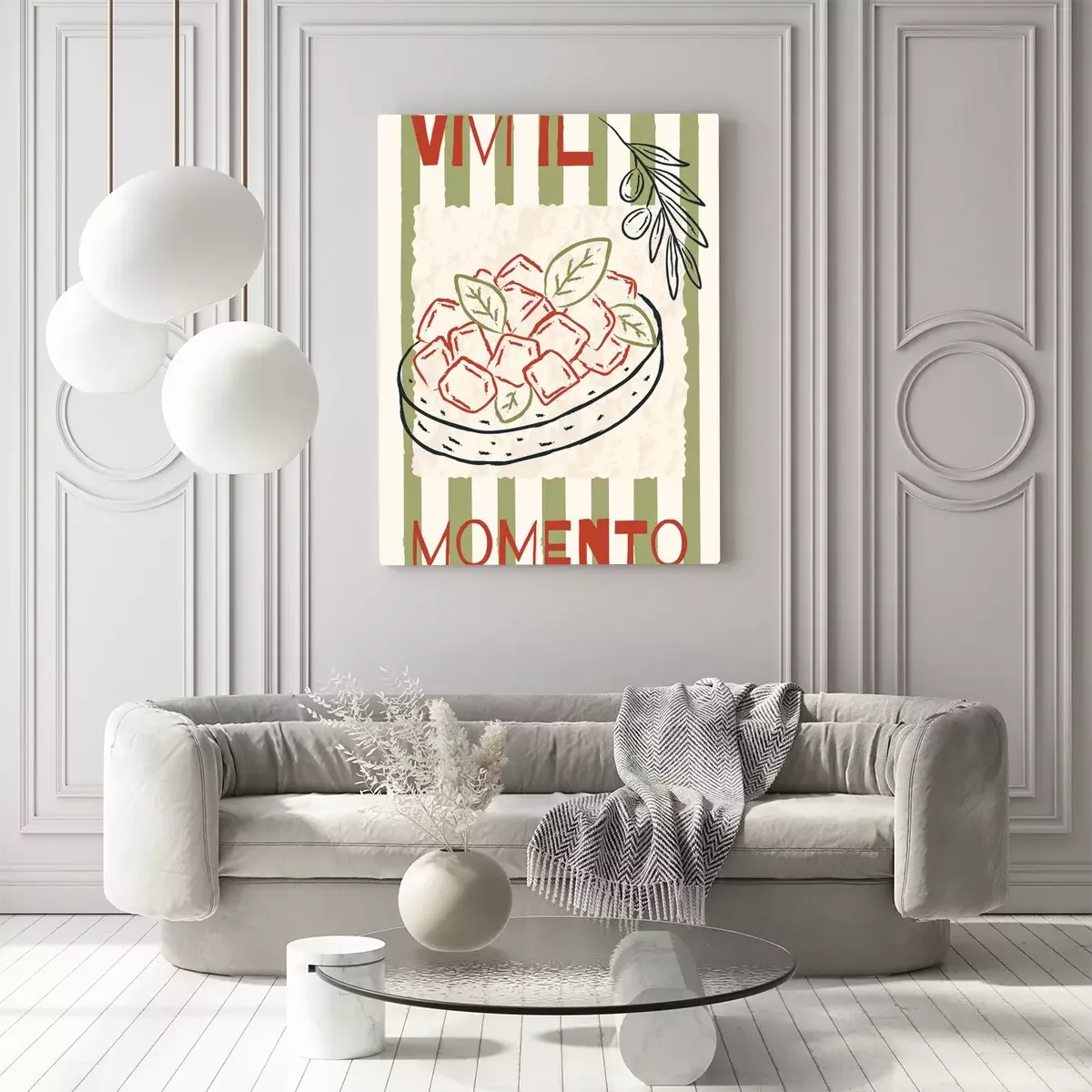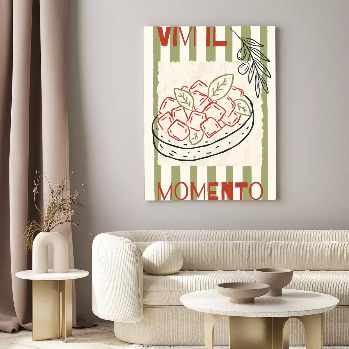 Sommerlicher tomatensalat auf gestreiftem hintergrund