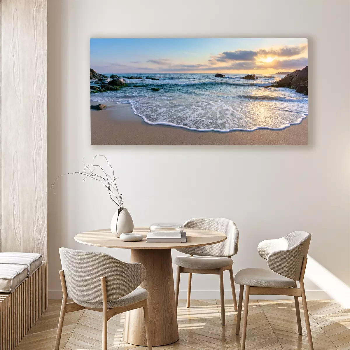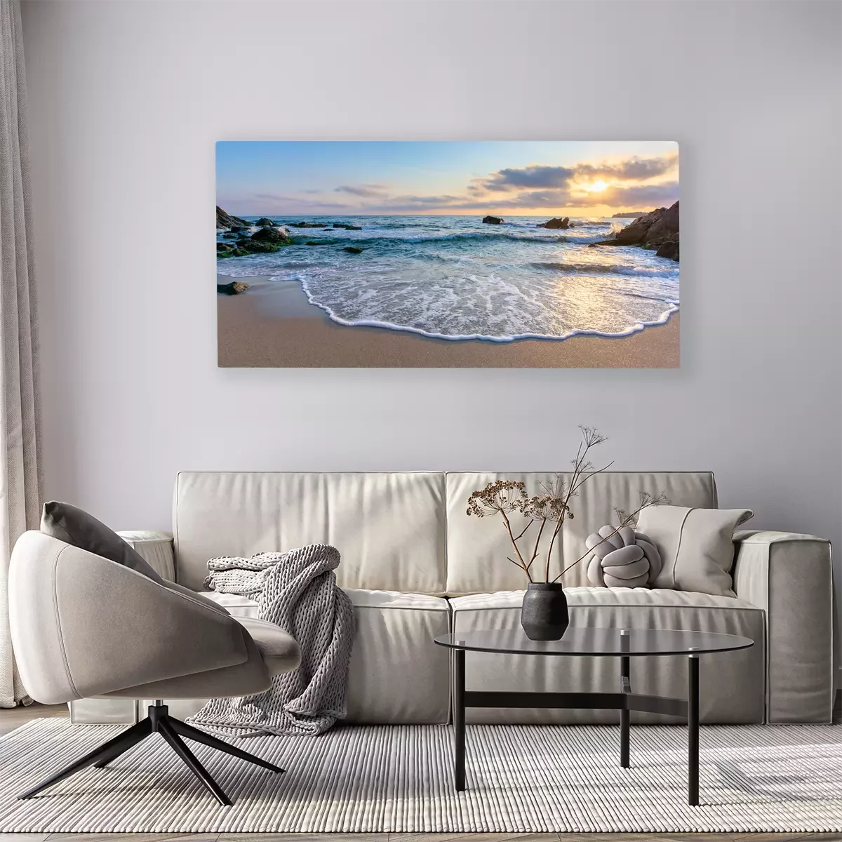 Das Motiv wird auf eine qualitativ hochwertige Leinwand gedruckt, die auf einen Blendrahmen gezogen wird. Da der Aufdruck die Seitenkanten bedeckt, muss das Bild nicht zusätzlich eingerahmt werden. Wir empfehlen außerdem Kompositionen aus mehreren Bildern, die ein harmonisches Ganzes bilden.