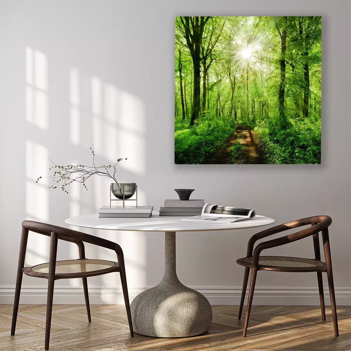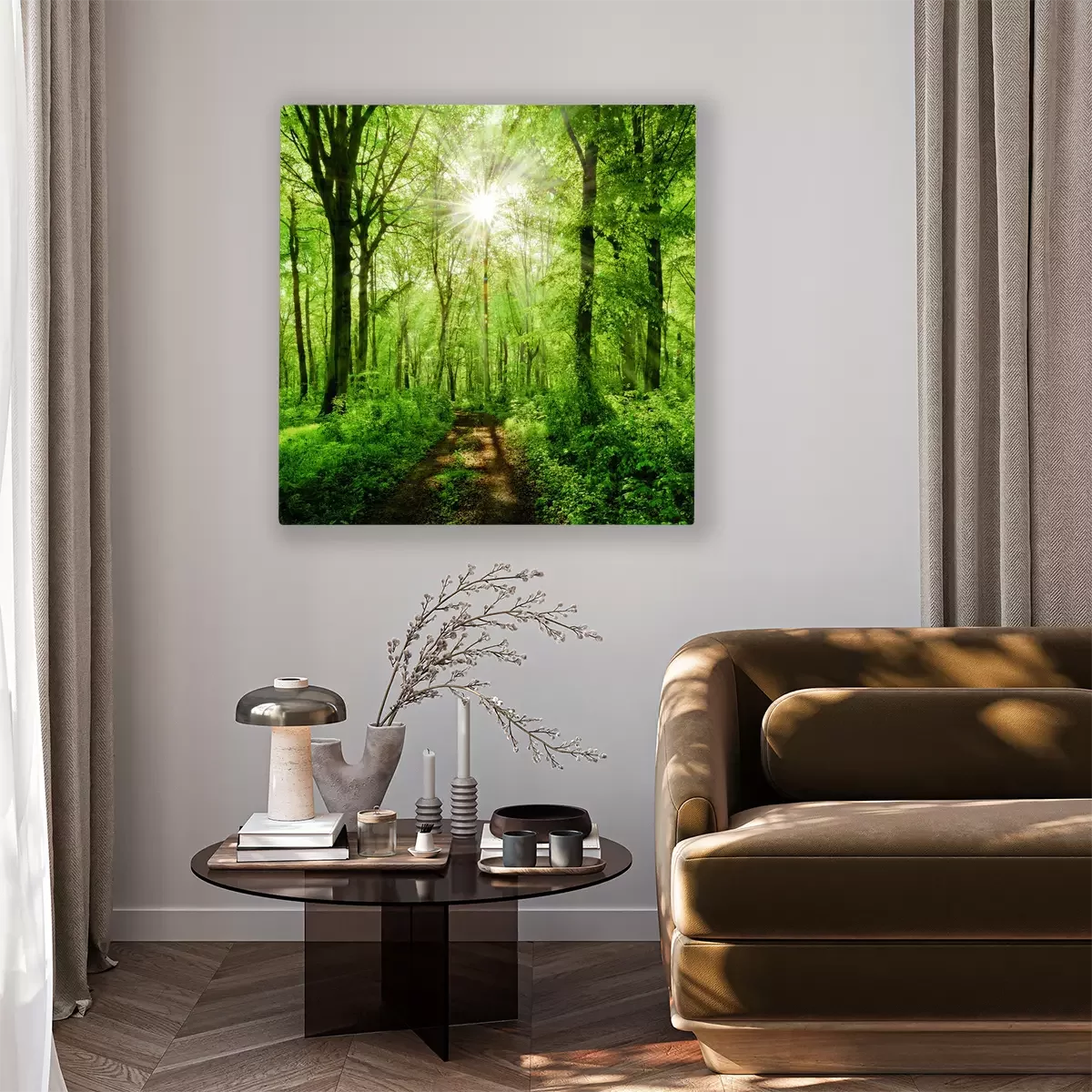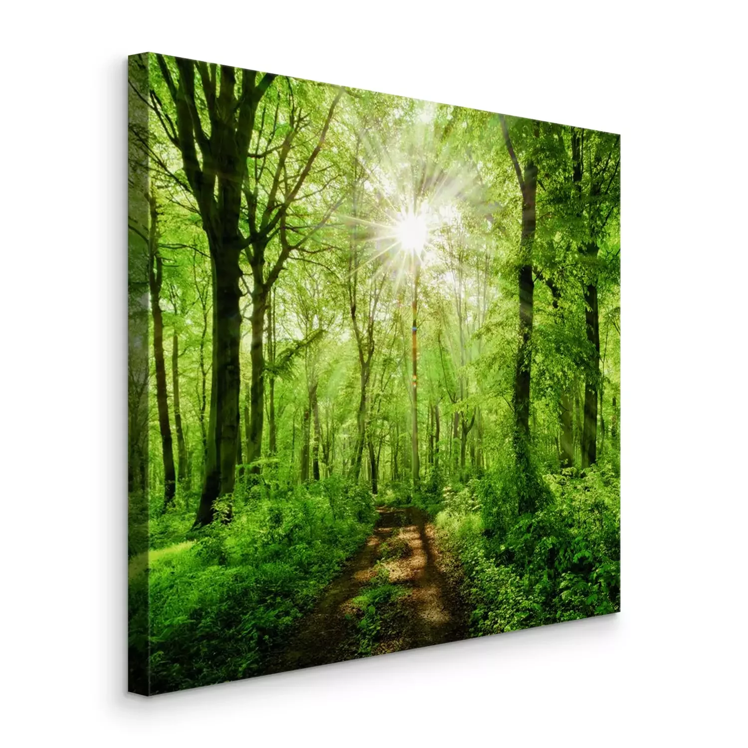 Sonnenaufgang über einer grünen waldstraße