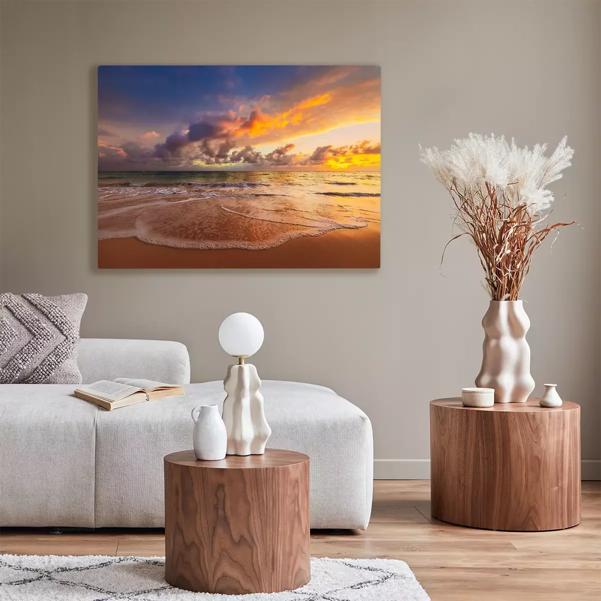 Das Motiv wird auf eine qualitativ hochwertige Leinwand gedruckt, die auf einen Blendrahmen gezogen wird. Da der Aufdruck die Seitenkanten bedeckt, muss das Bild nicht zusätzlich eingerahmt werden. Wir empfehlen außerdem Kompositionen aus mehreren Bildern, die ein harmonisches Ganzes bilden.