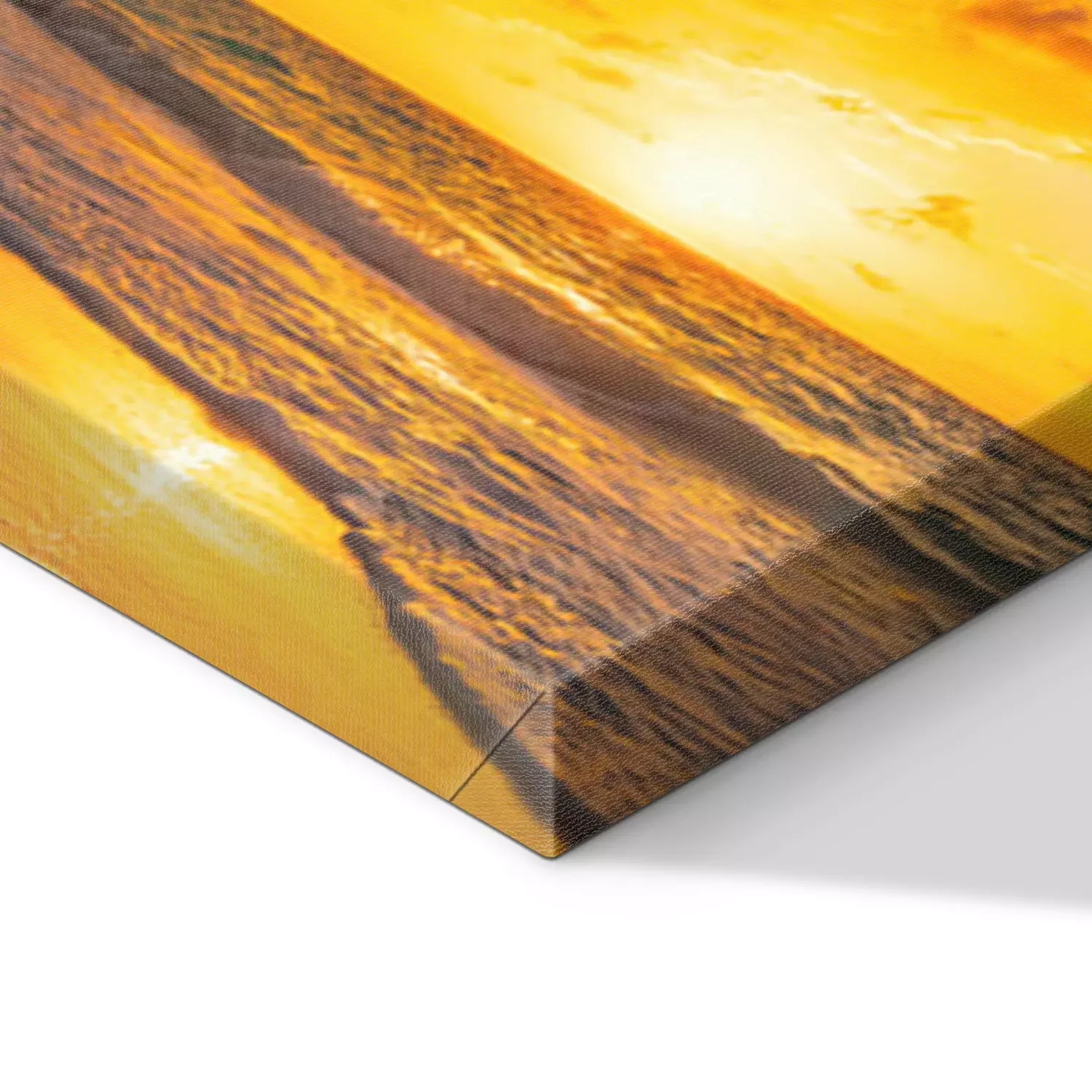 Das Motiv wird auf eine qualitativ hochwertige Leinwand gedruckt, die auf einen Blendrahmen gezogen wird. Da der Aufdruck die Seitenkanten bedeckt, muss das Bild nicht zusätzlich eingerahmt werden. Wir empfehlen außerdem Kompositionen aus mehreren Bildern, die ein harmonisches Ganzes bilden.