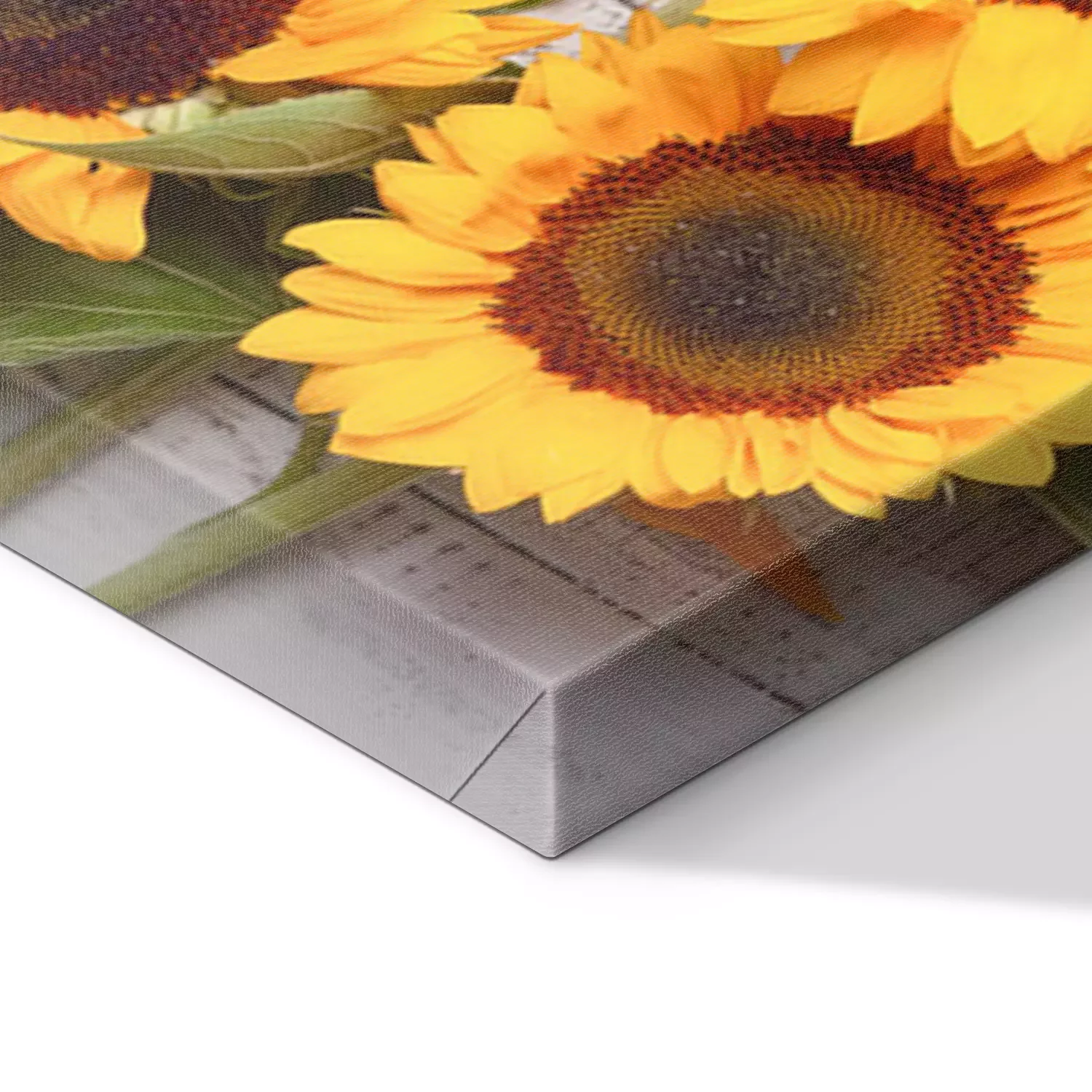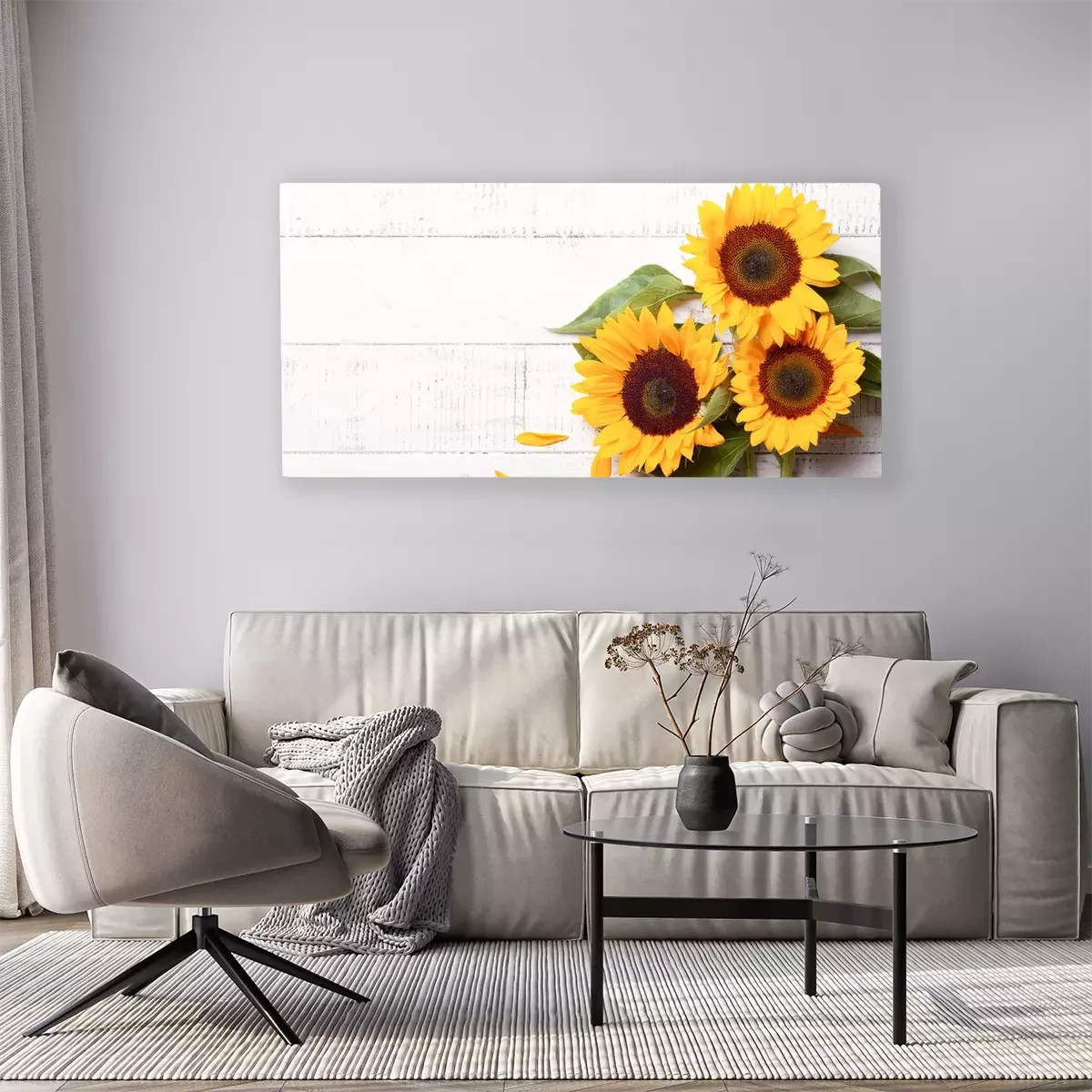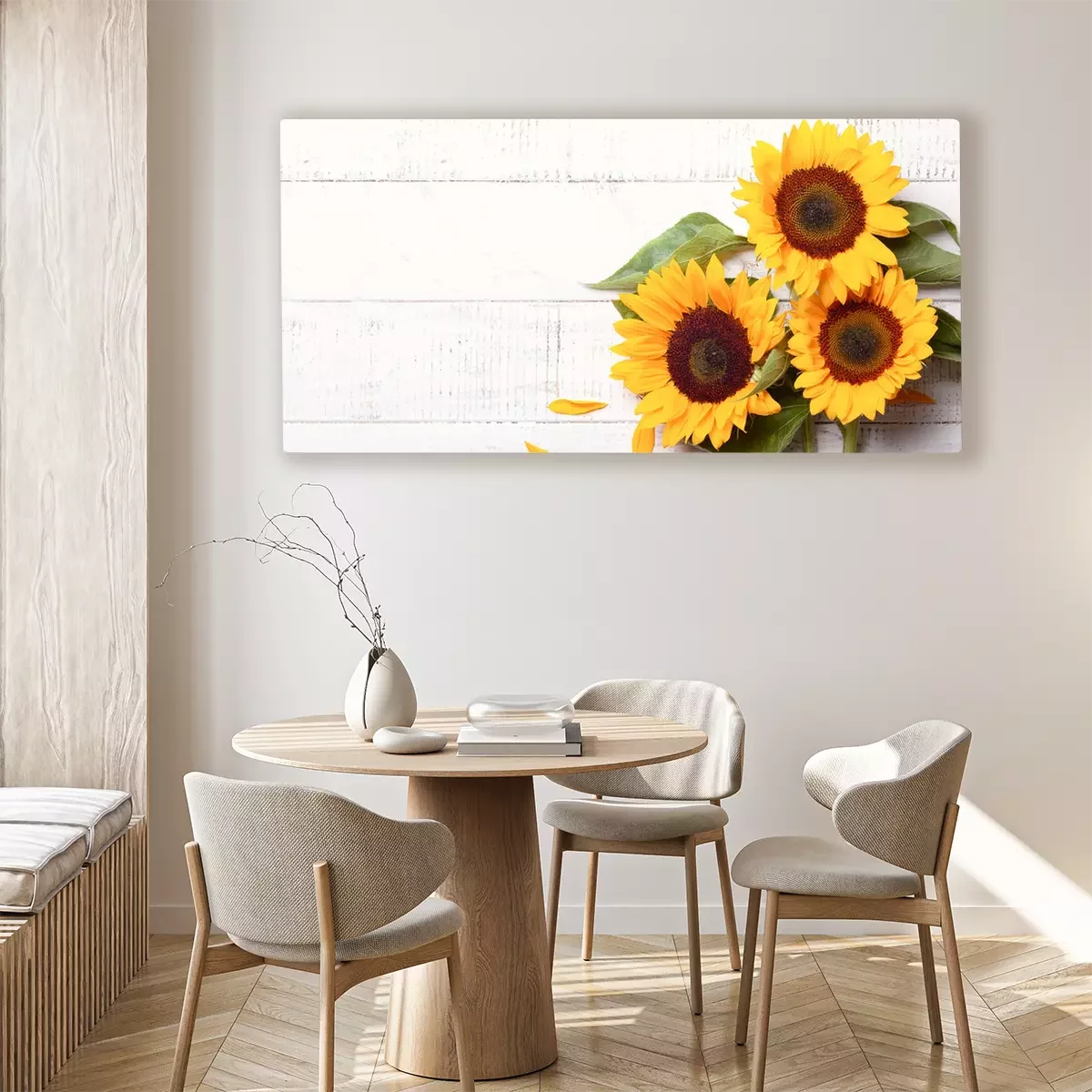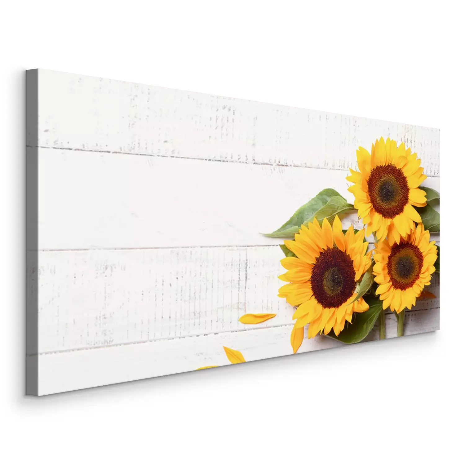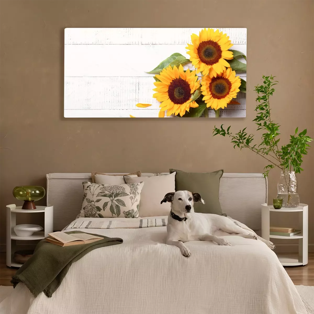 Bild Sonnenblumen vor dem Hintergrund weißer Bretter