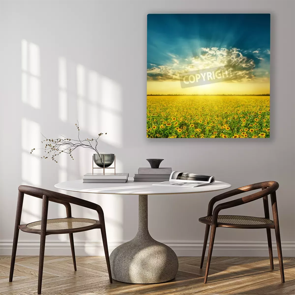 Das Motiv wird auf eine qualitativ hochwertige Leinwand gedruckt, die auf einen Blendrahmen gezogen wird. Da der Aufdruck die Seitenkanten bedeckt, muss das Bild nicht zusätzlich eingerahmt werden. Wir empfehlen außerdem Kompositionen aus mehreren Bildern, die ein harmonisches Ganzes bilden.