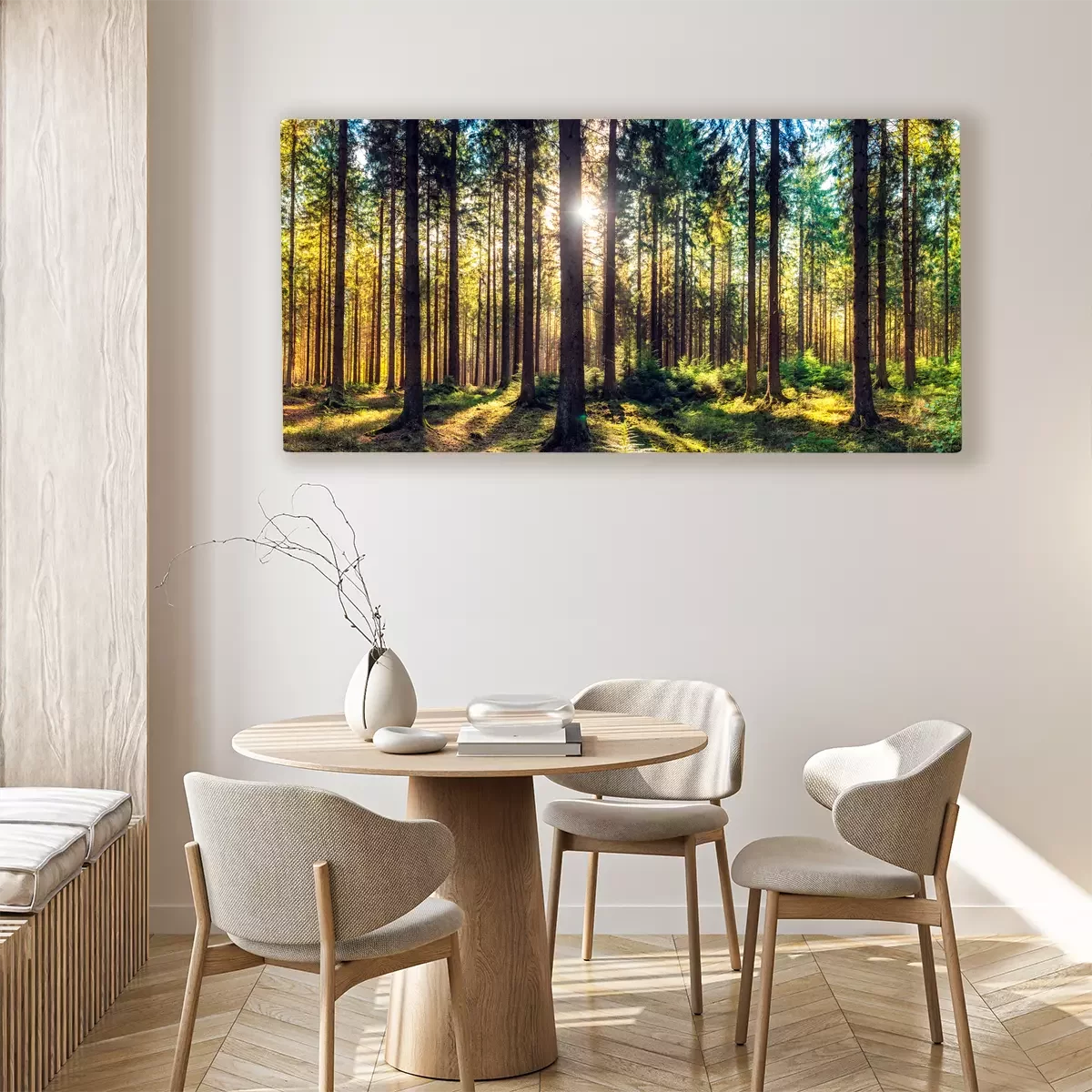 Sonnenstrahlen im kiefernwald