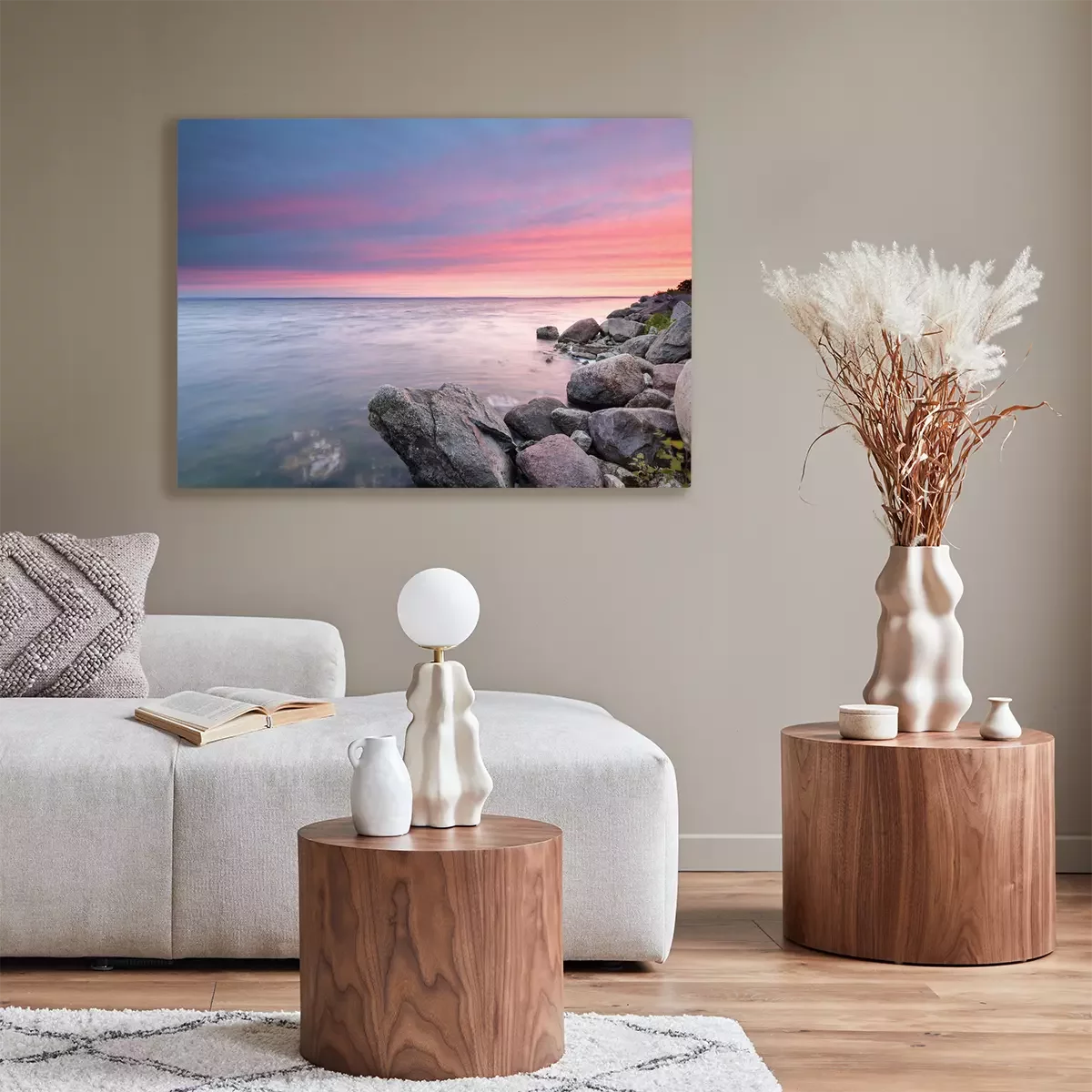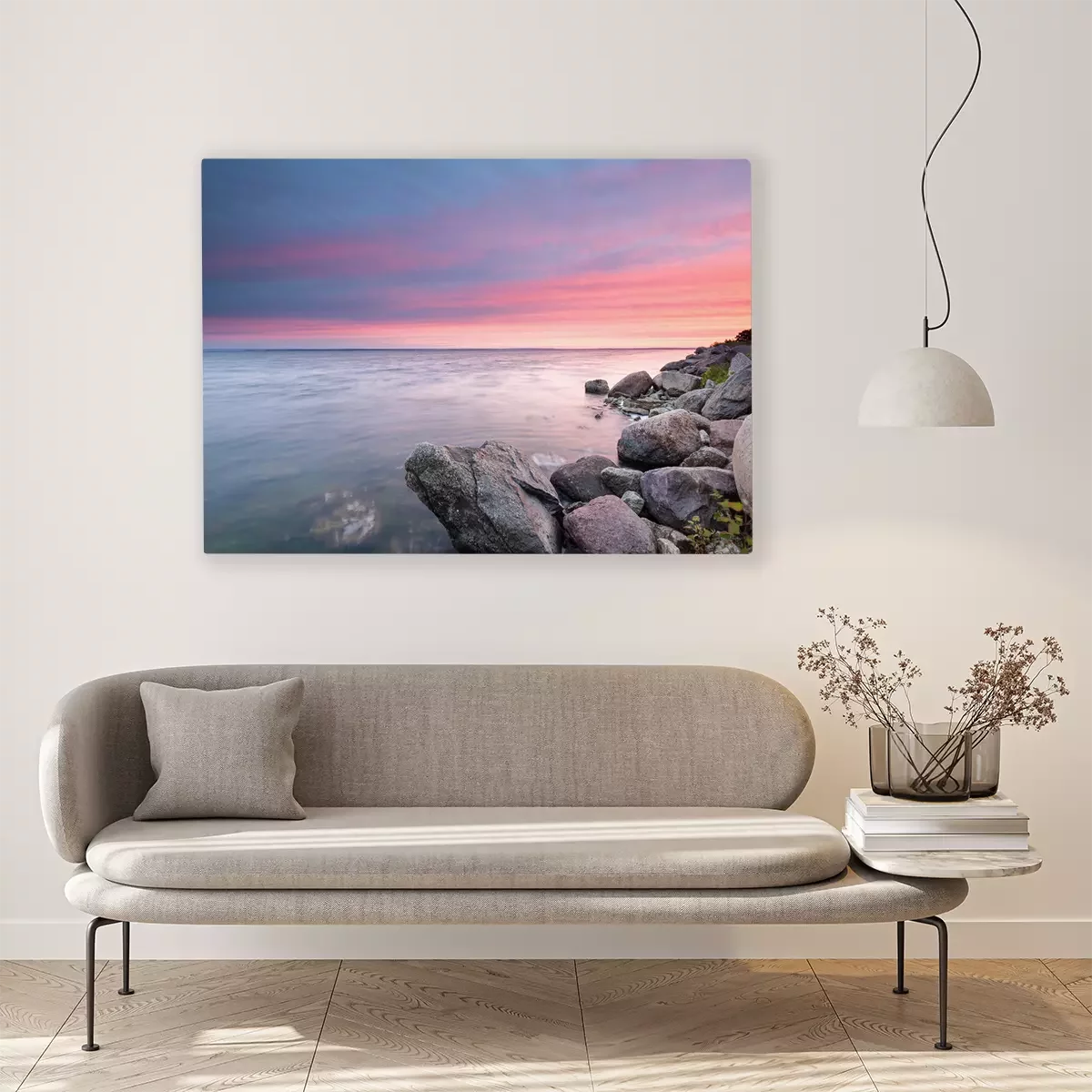 Das Motiv wird auf eine qualitativ hochwertige Leinwand gedruckt, die auf einen Blendrahmen gezogen wird. Da der Aufdruck die Seitenkanten bedeckt, muss das Bild nicht zusätzlich eingerahmt werden. Wir empfehlen außerdem Kompositionen aus mehreren Bildern, die ein harmonisches Ganzes bilden.