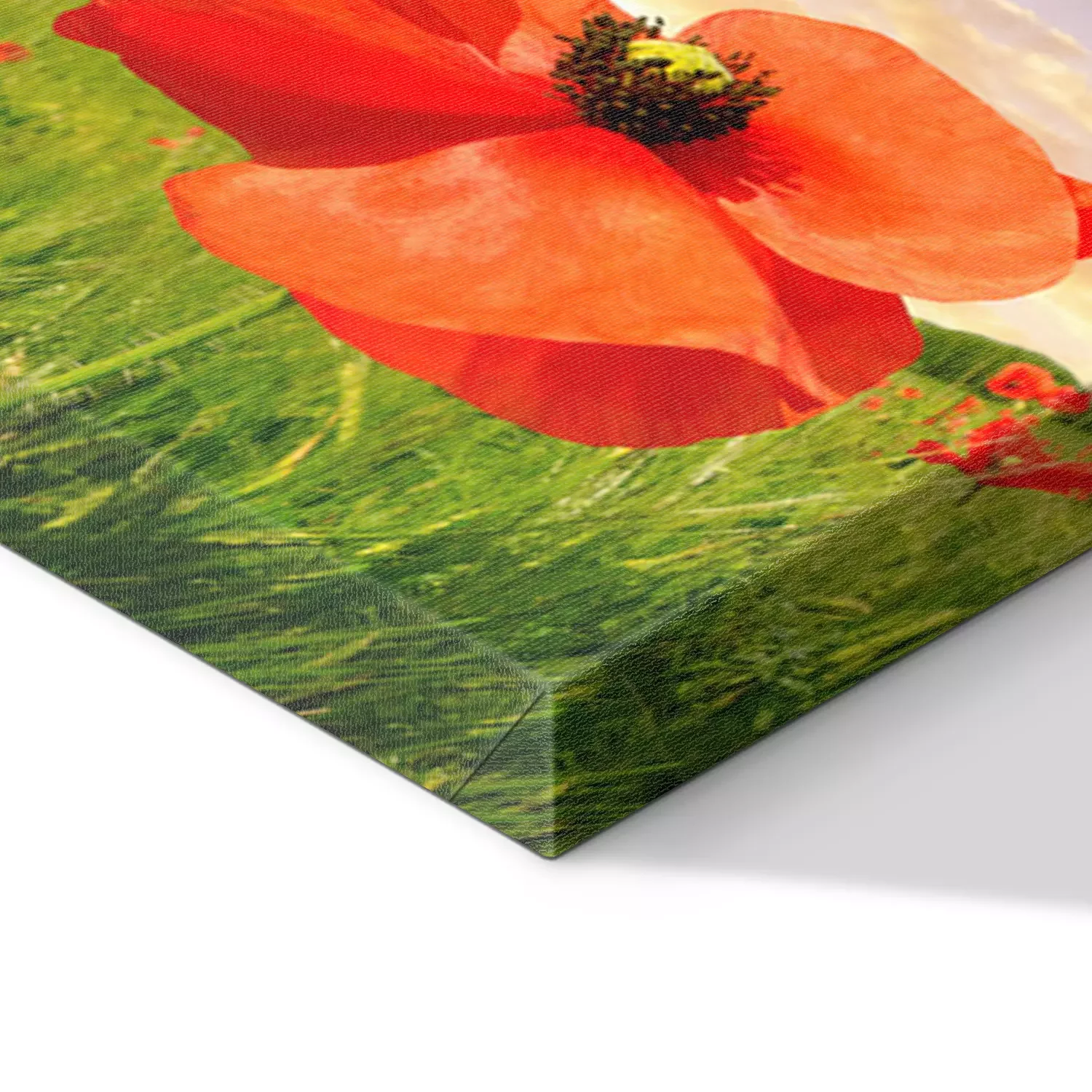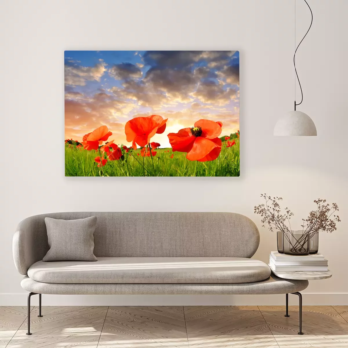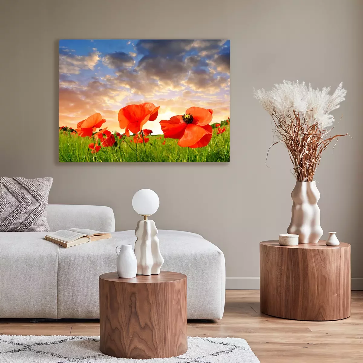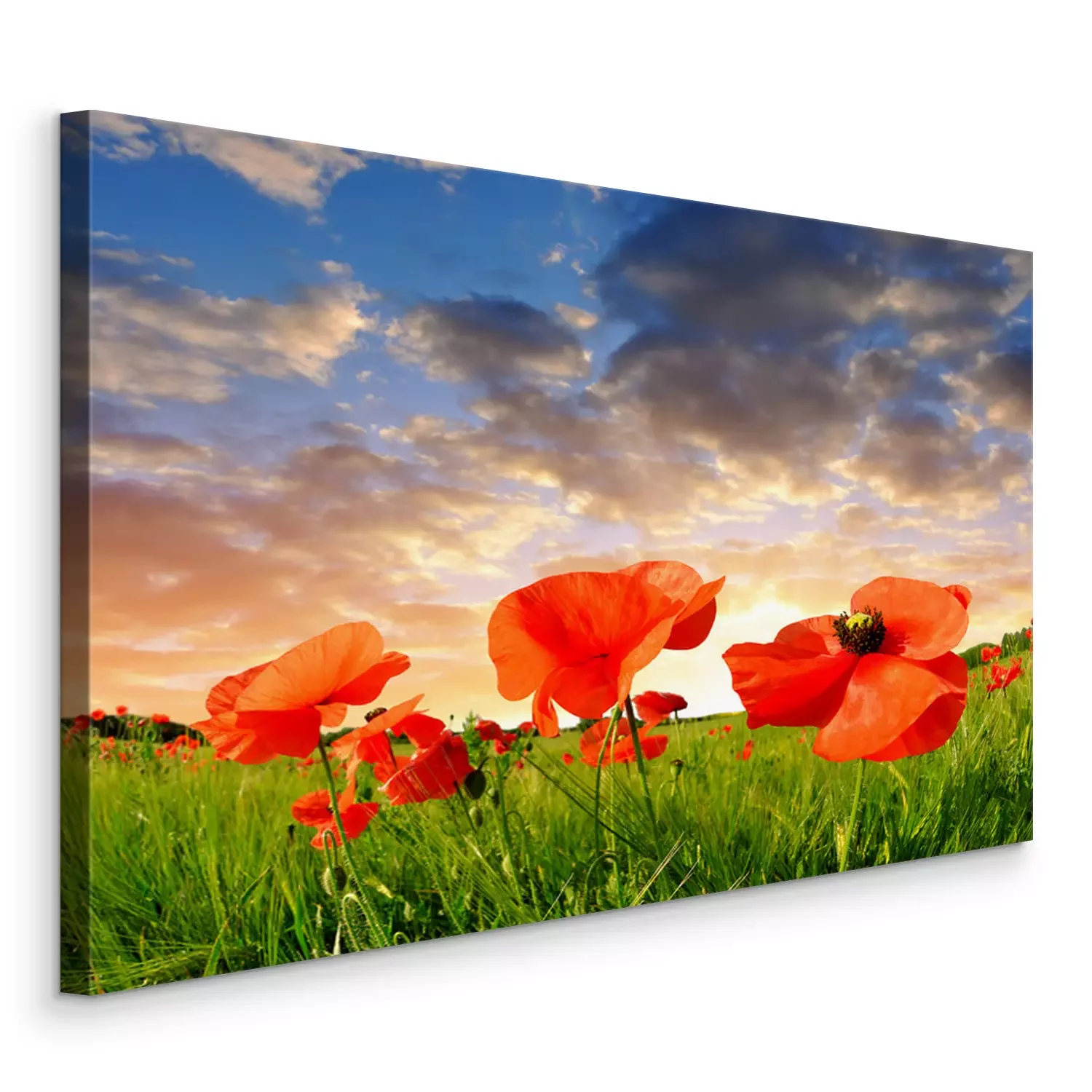 Bild: Sonnenuntergang und Mohnblumenfeld