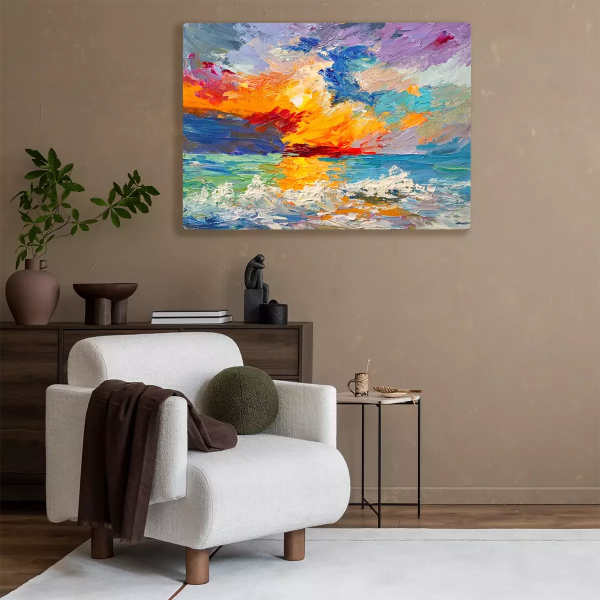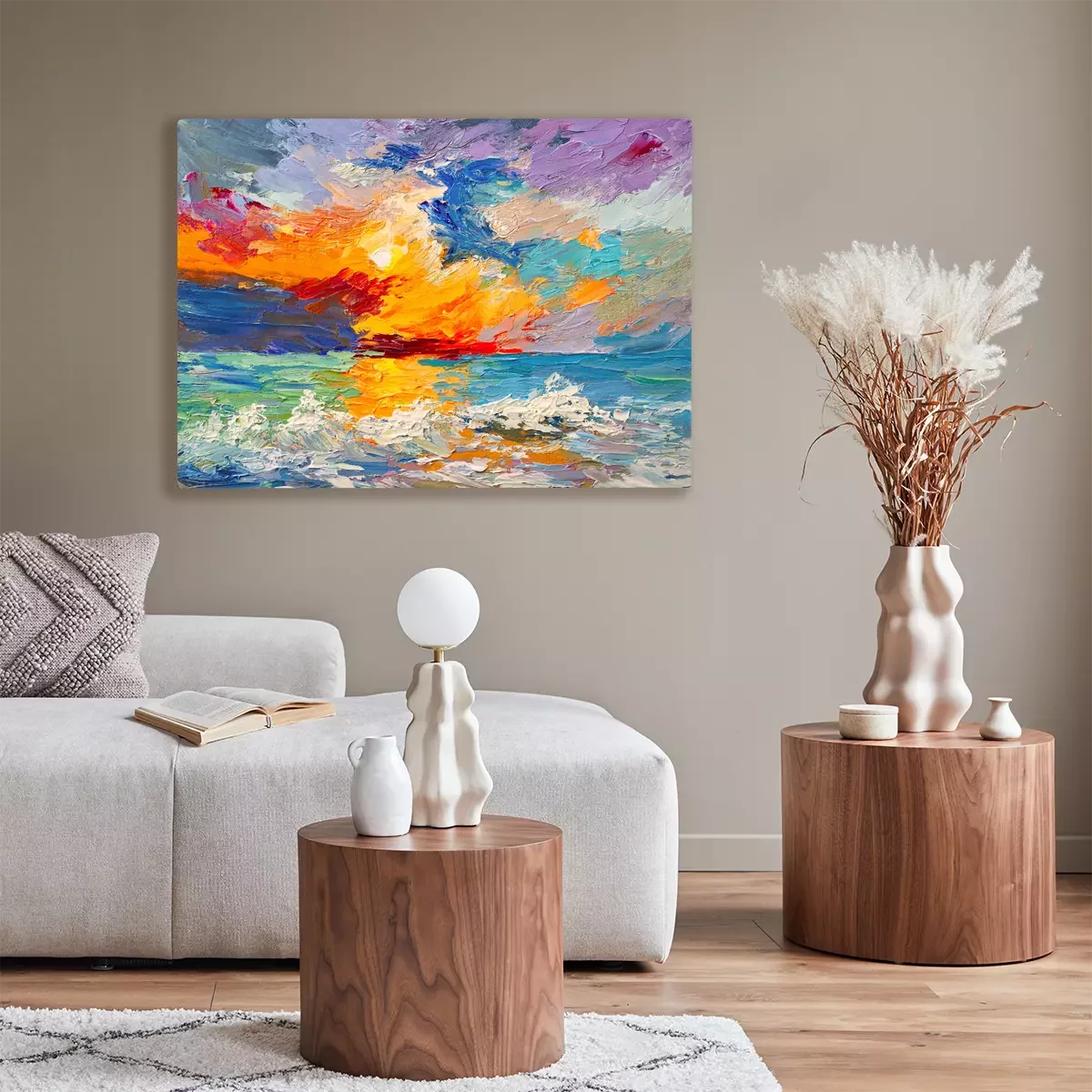 Das Motiv wird auf eine qualitativ hochwertige Leinwand gedruckt, die auf einen Blendrahmen gezogen wird. Da der Aufdruck die Seitenkanten bedeckt, muss das Bild nicht zusätzlich eingerahmt werden. Wir empfehlen außerdem Kompositionen aus mehreren Bildern, die ein harmonisches Ganzes bilden.