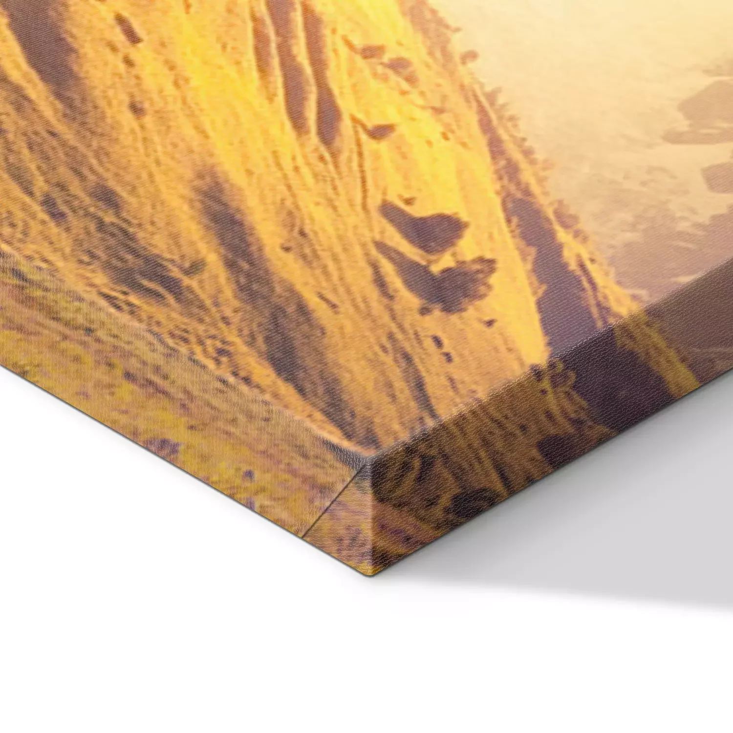 Das Motiv wird auf eine qualitativ hochwertige Leinwand gedruckt, die auf einen Blendrahmen gezogen wird. Da der Aufdruck die Seitenkanten bedeckt, muss das Bild nicht zusätzlich eingerahmt werden. Wir empfehlen außerdem Kompositionen aus mehreren Bildern, die ein harmonisches Ganzes bilden.