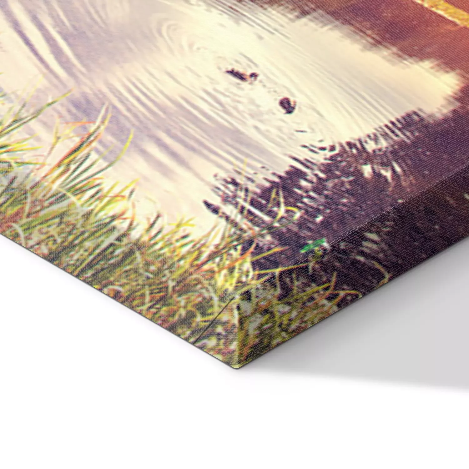 Das Motiv wird auf eine qualitativ hochwertige Leinwand gedruckt, die auf einen Blendrahmen gezogen wird. Da der Aufdruck die Seitenkanten bedeckt, muss das Bild nicht zusätzlich eingerahmt werden. Wir empfehlen außerdem Kompositionen aus mehreren Bildern, die ein harmonisches Ganzes bilden.