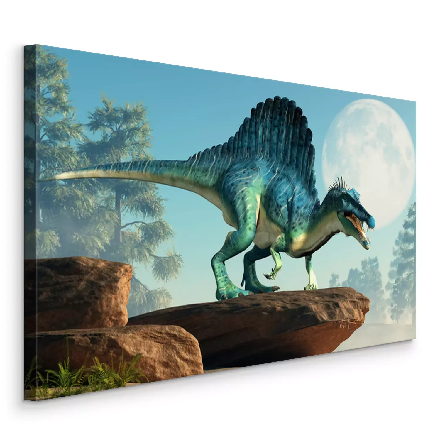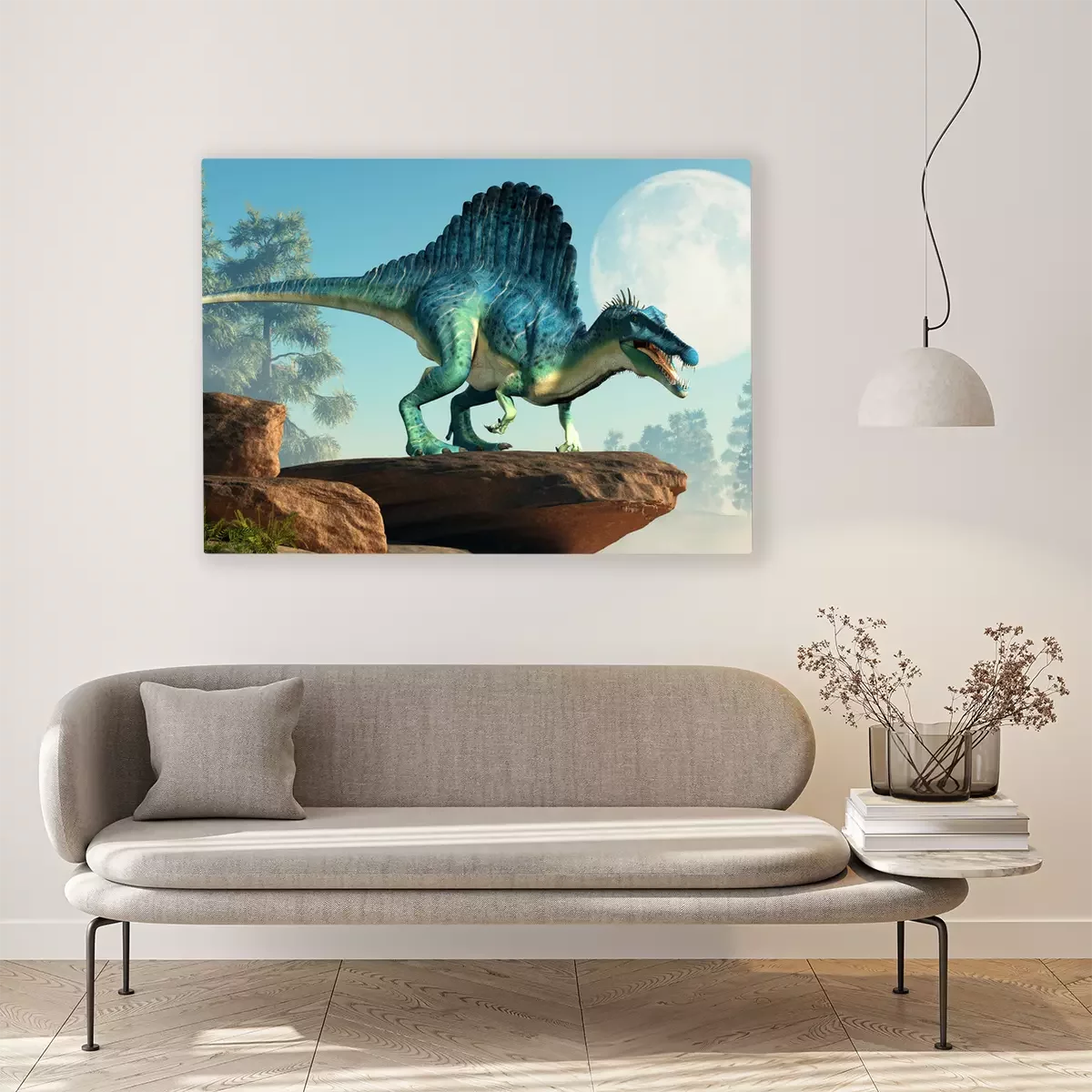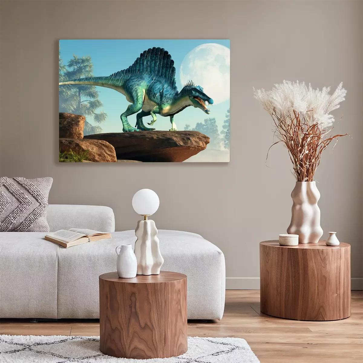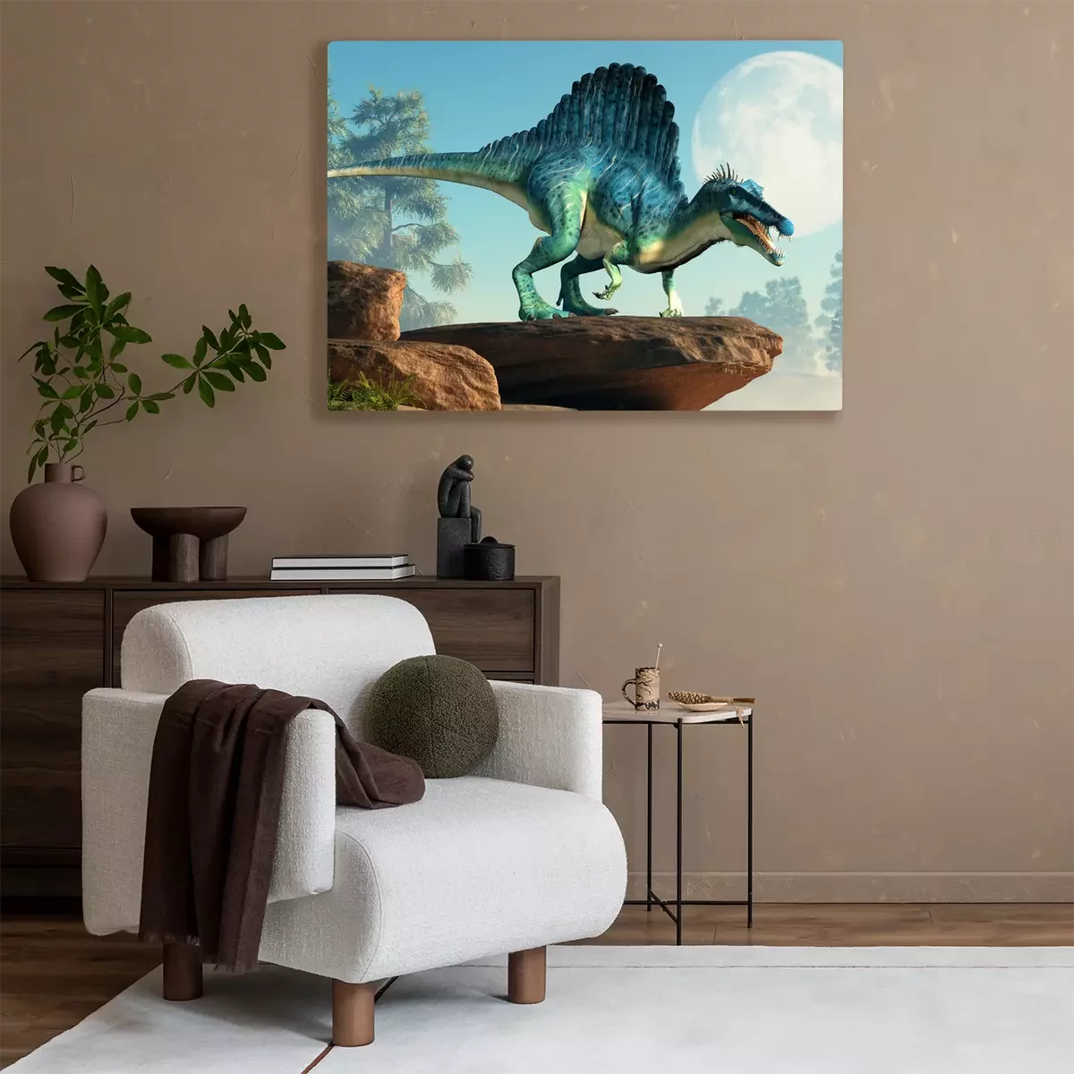 Bild Spinosaurus auf einer Klippe mit Mond im Hintergrund