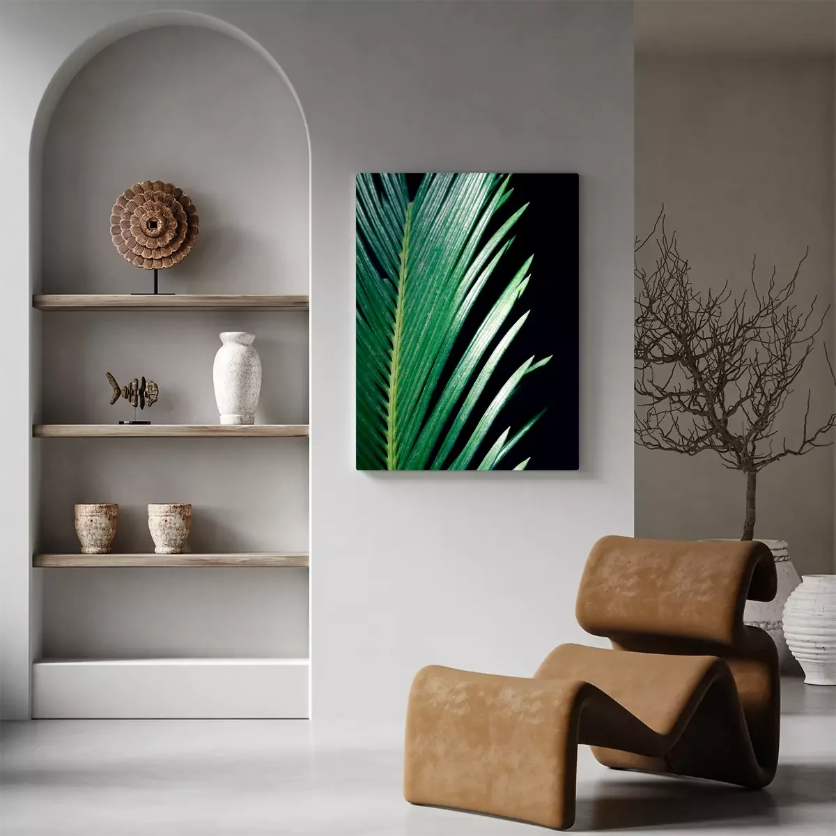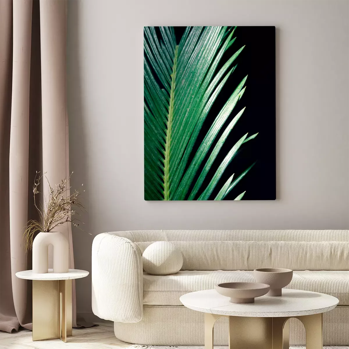 Spitz zulaufende palmenblätter auf schwarzem hintergrund
