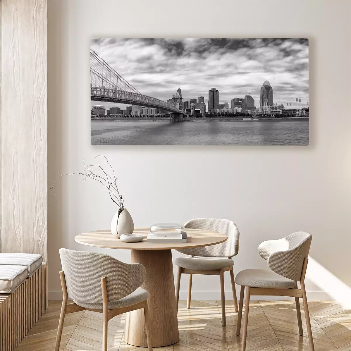 Das Motiv wird auf eine qualitativ hochwertige Leinwand gedruckt, die auf einen Blendrahmen gezogen wird. Da der Aufdruck die Seitenkanten bedeckt, muss das Bild nicht zusätzlich eingerahmt werden. Wir empfehlen außerdem Kompositionen aus mehreren Bildern, die ein harmonisches Ganzes bilden.