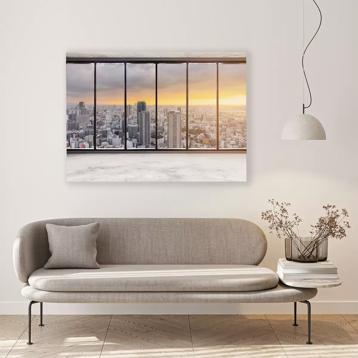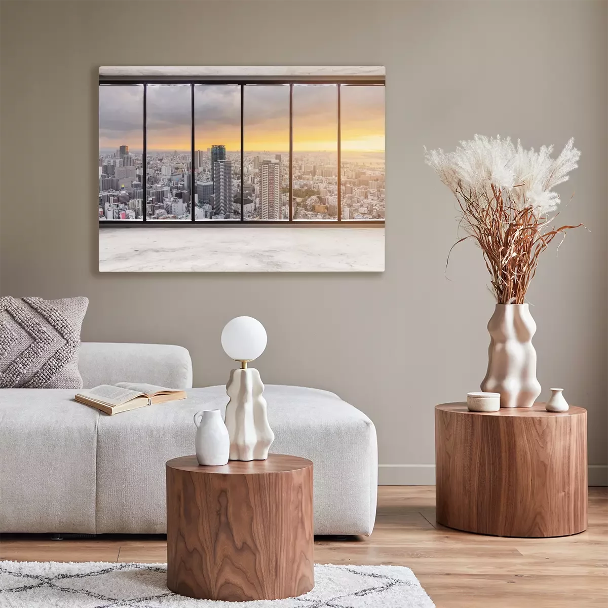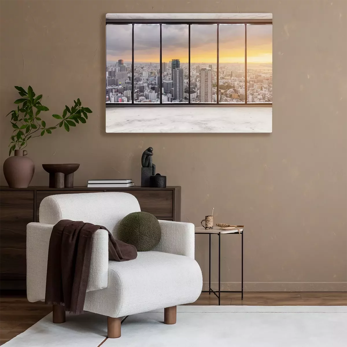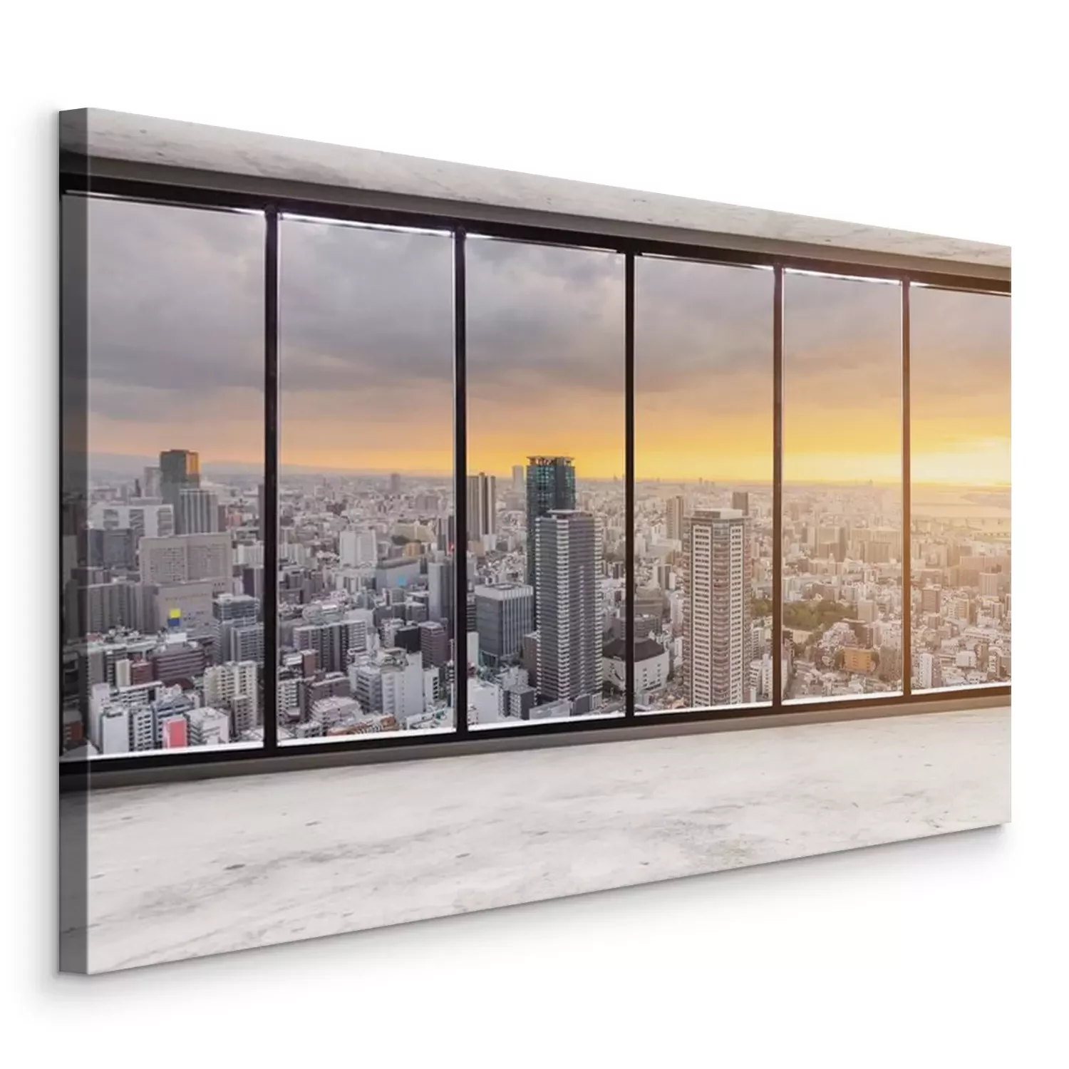 Nachgeahmtes Fenstermuster mit Stadtpanorama