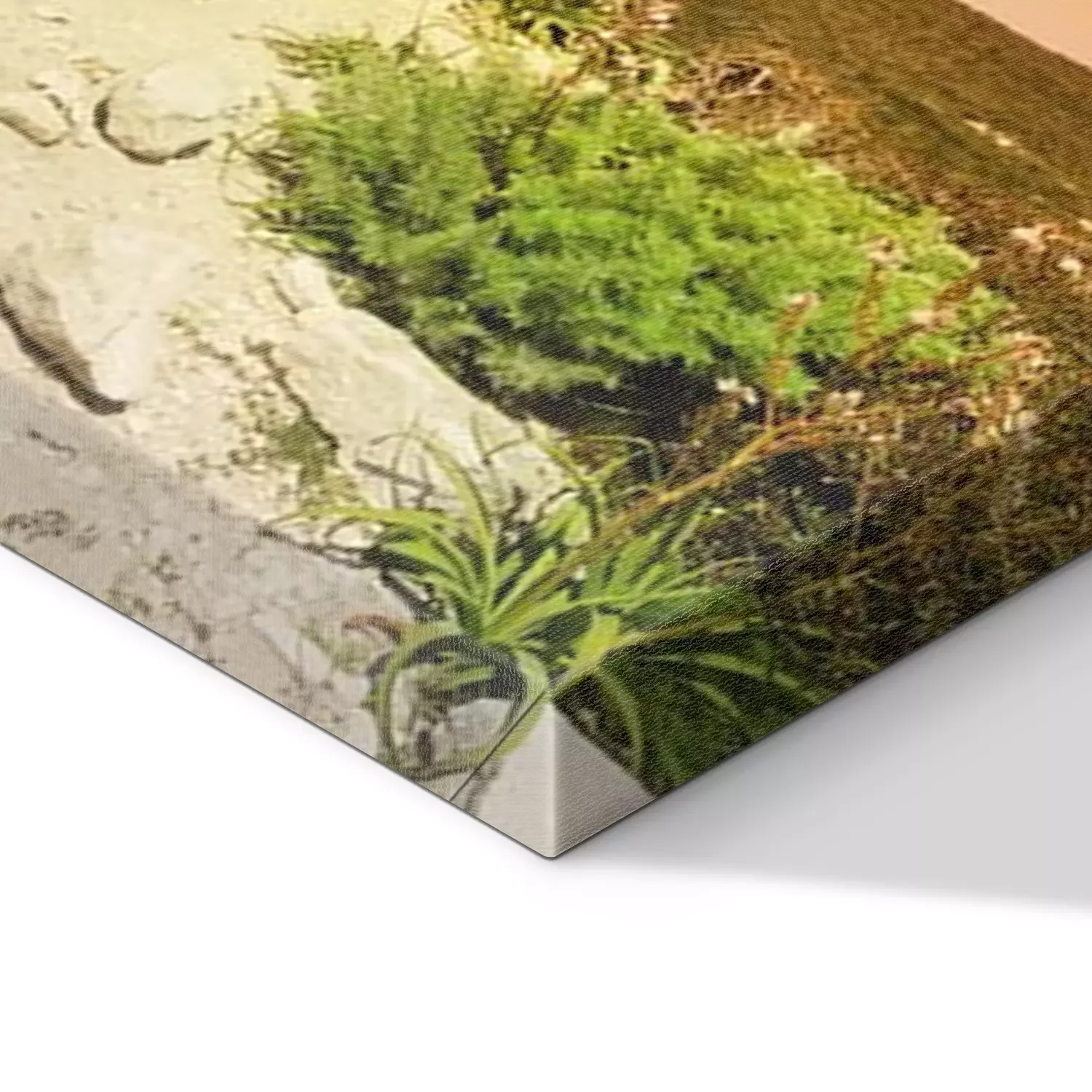 Das Motiv wird auf eine qualitativ hochwertige Leinwand gedruckt, die auf einen Blendrahmen gezogen wird. Da der Aufdruck die Seitenkanten bedeckt, muss das Bild nicht zusätzlich eingerahmt werden. Wir empfehlen außerdem Kompositionen aus mehreren Bildern, die ein harmonisches Ganzes bilden.