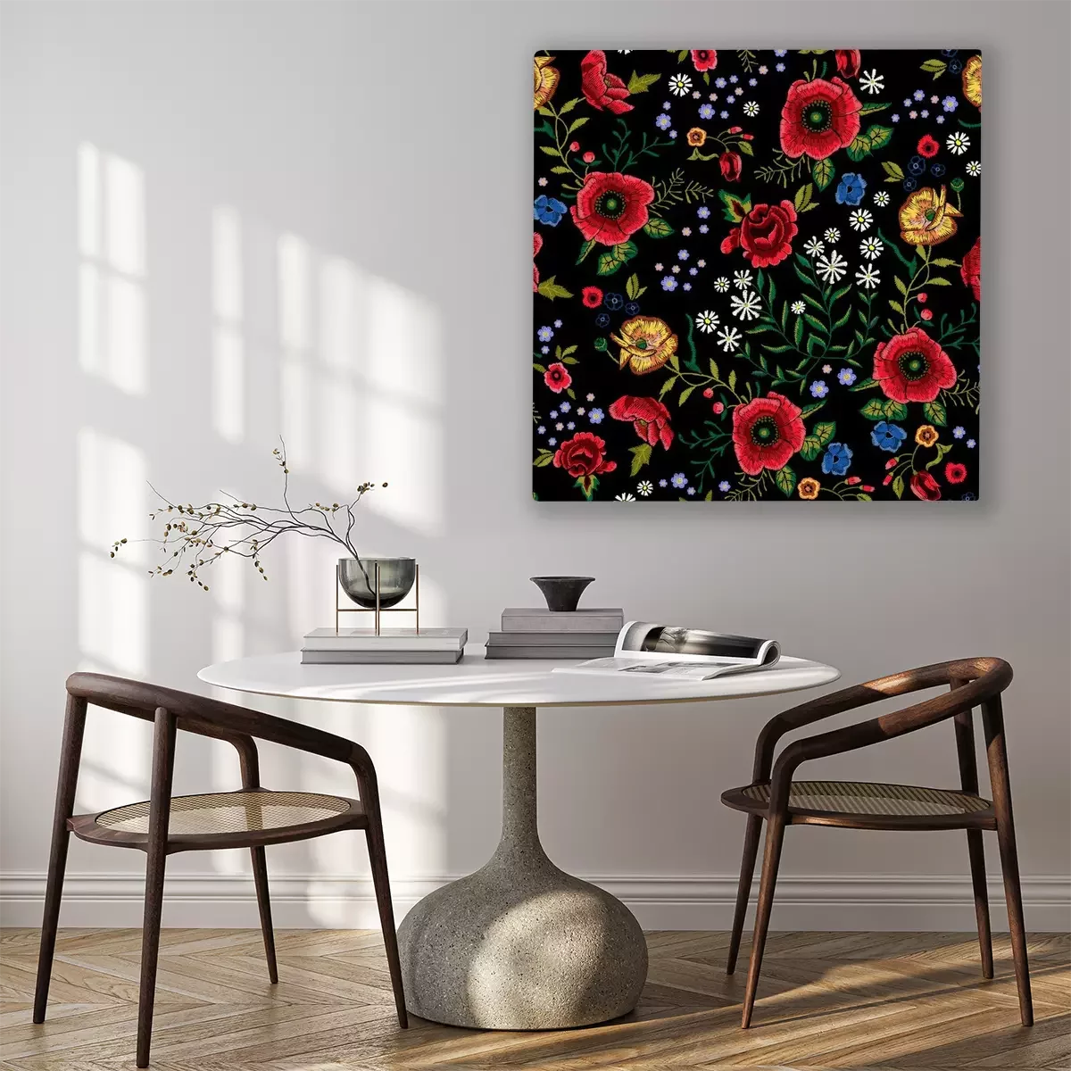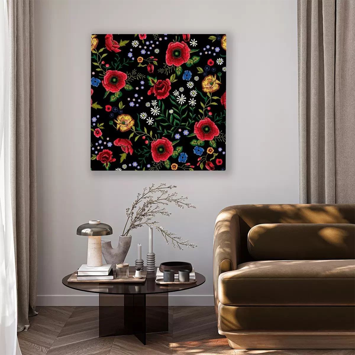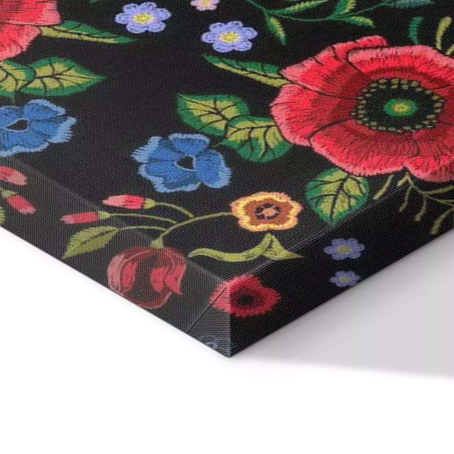 Bild: Stickerei traditionelle nahtlose Muster mit roten Mohnblumen und Rosen.