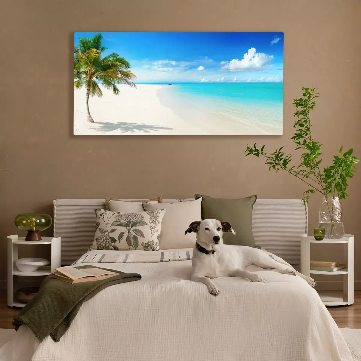 Aufnahme mit Strand und Palmenblättern