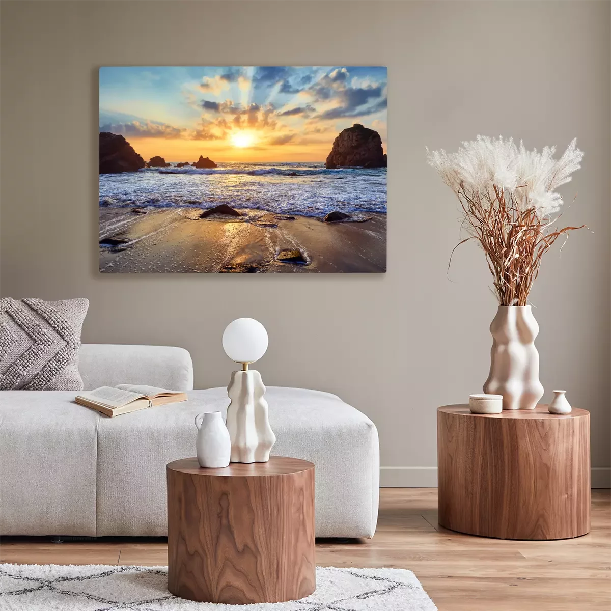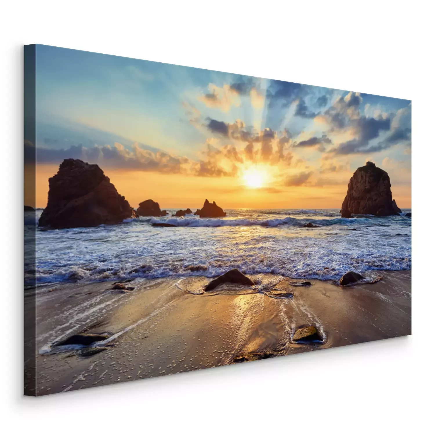 Das Motiv wird auf eine qualitativ hochwertige Leinwand gedruckt, die auf einen Blendrahmen gezogen wird. Da der Aufdruck die Seitenkanten bedeckt, muss das Bild nicht zusätzlich eingerahmt werden. Wir empfehlen außerdem Kompositionen aus mehreren Bildern, die ein harmonisches Ganzes bilden.