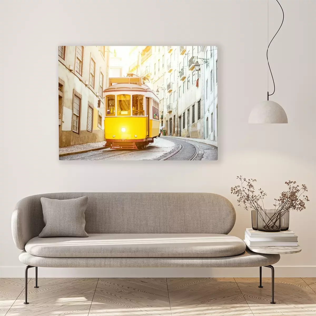 Bild Straßenbahn zwischen Gebäuden in Lissabon