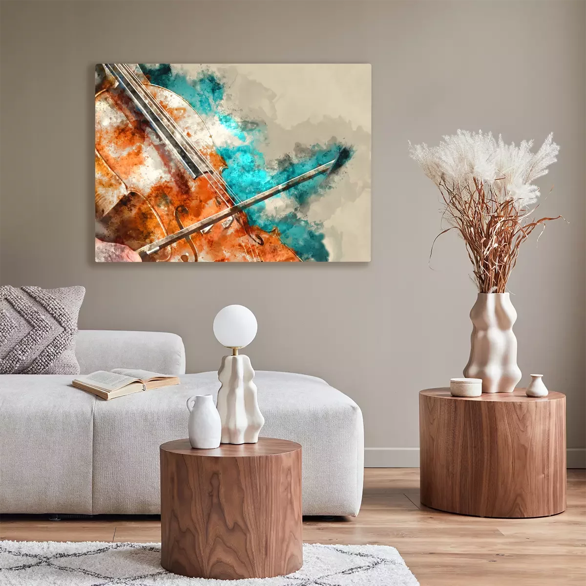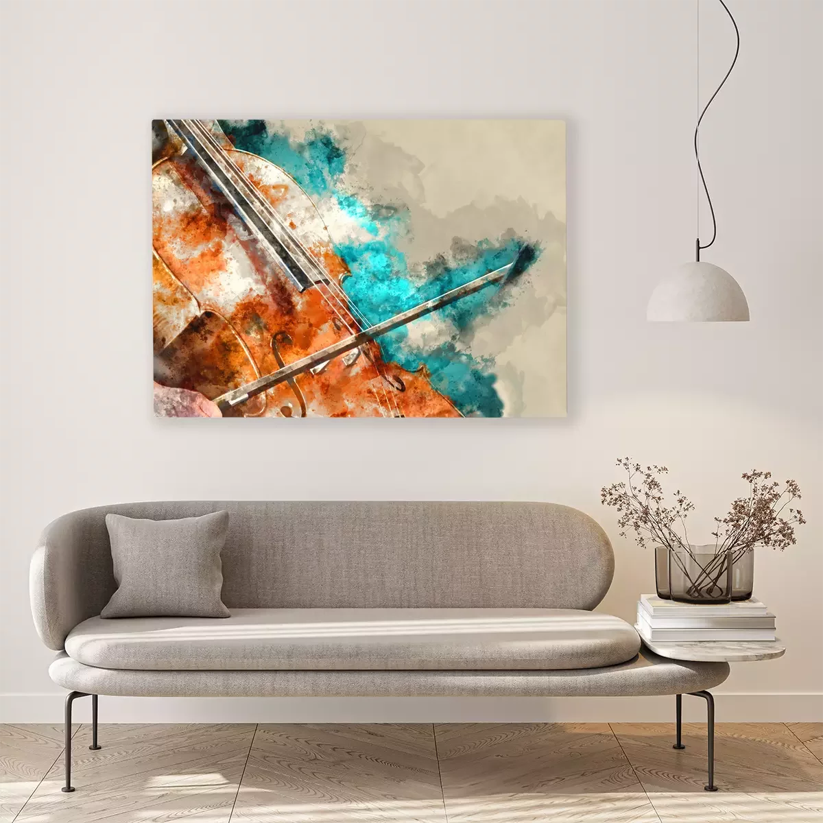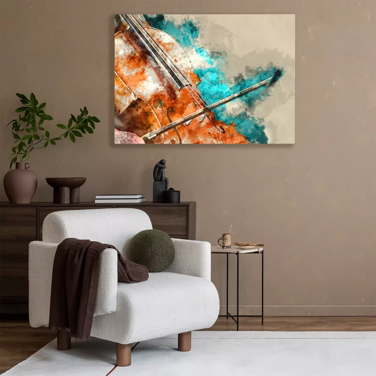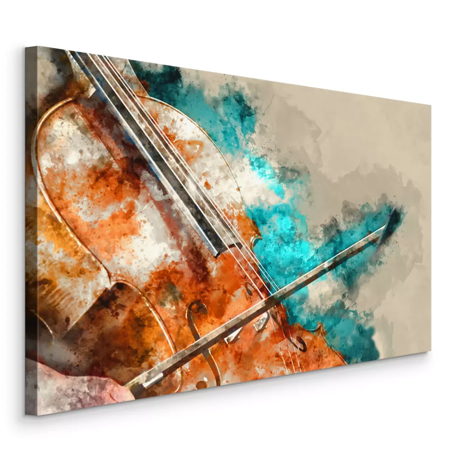 Mit Aquarell bemaltes Instrument Cello und Bogen
