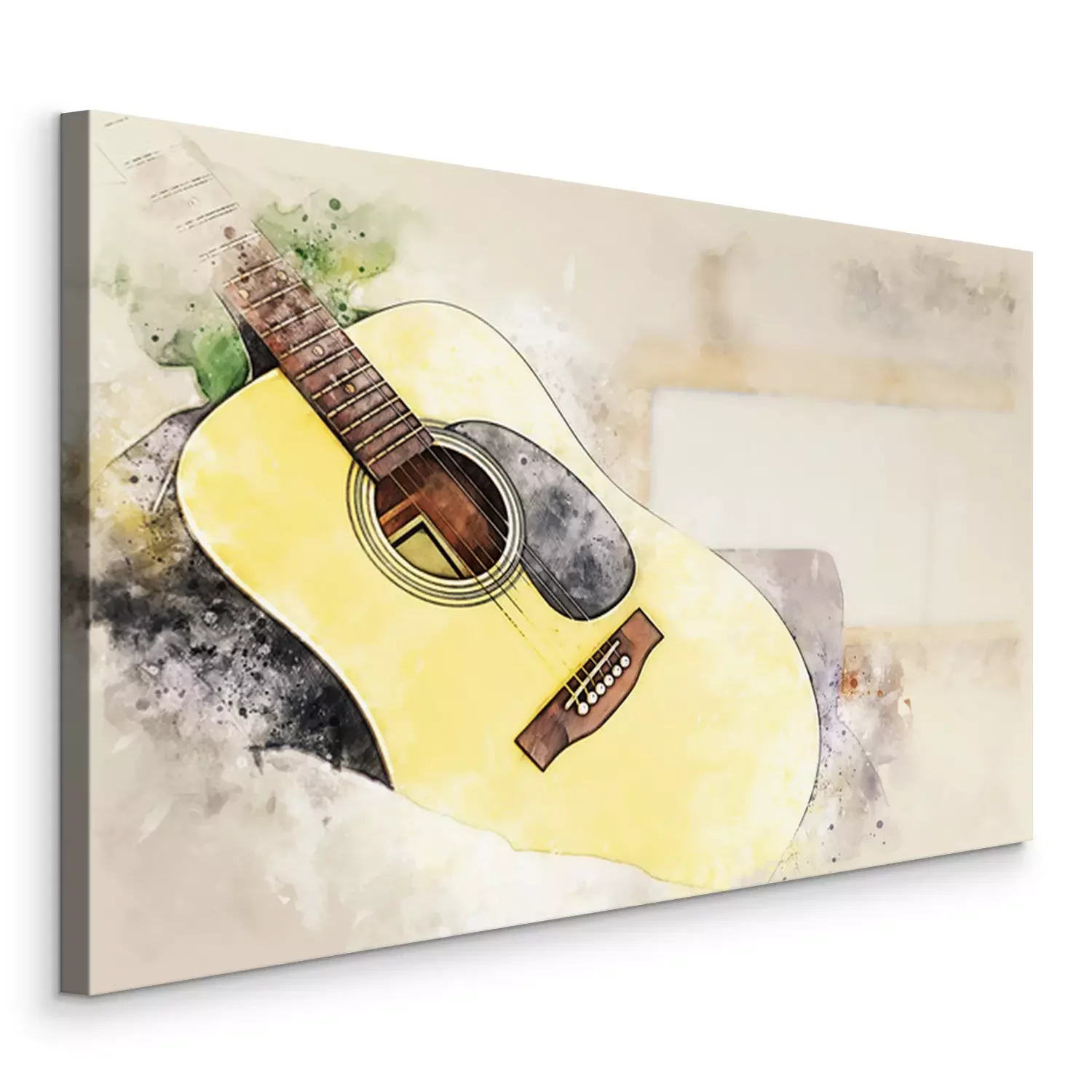 Akustikgitarre mit Aquarellfarben gemalt Grafik