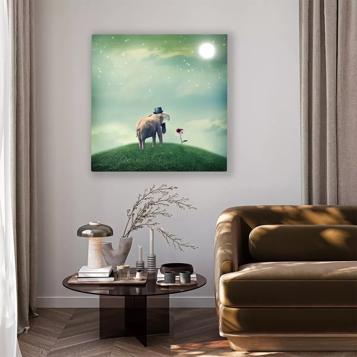 Bild Surrealismus Elefant und Blume