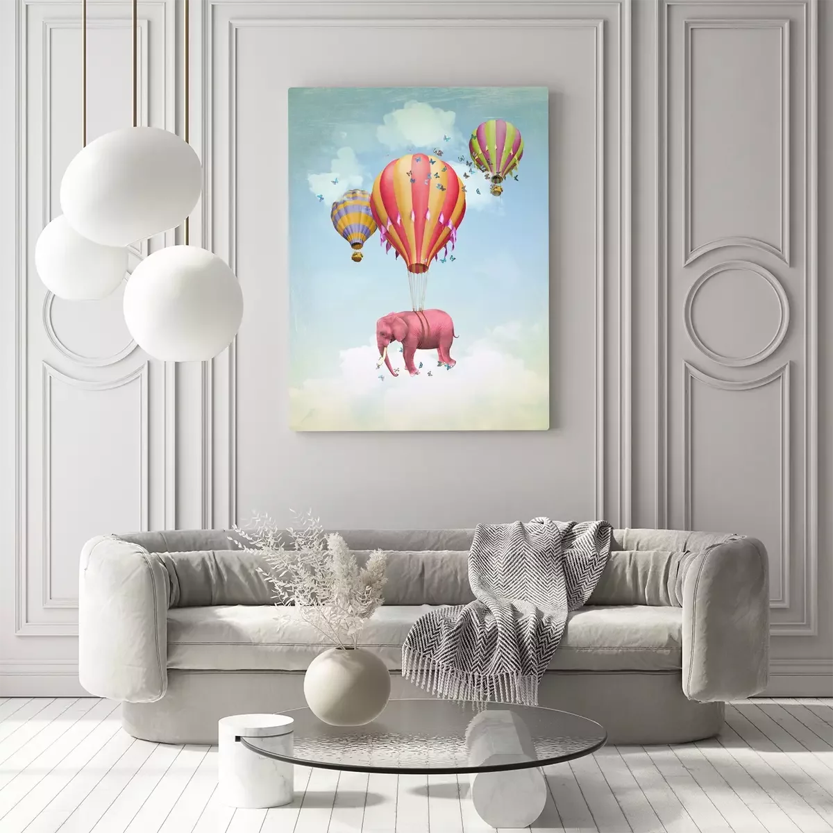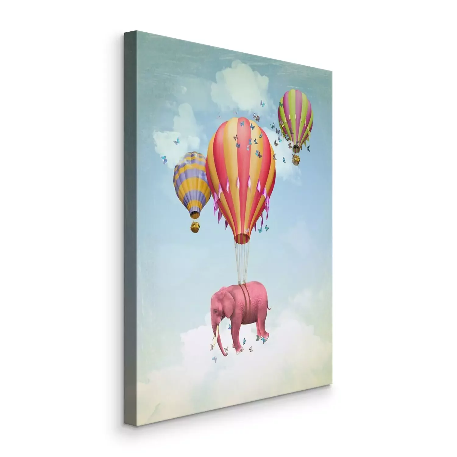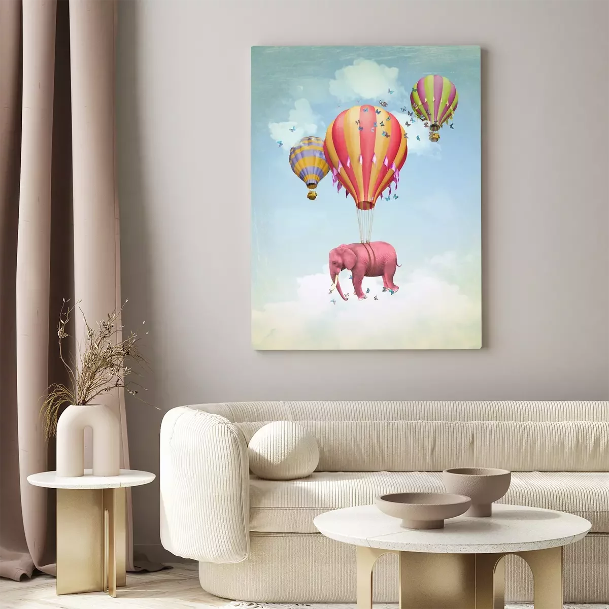 Bild: Surrealistischer rosa Elefant und Luftballons