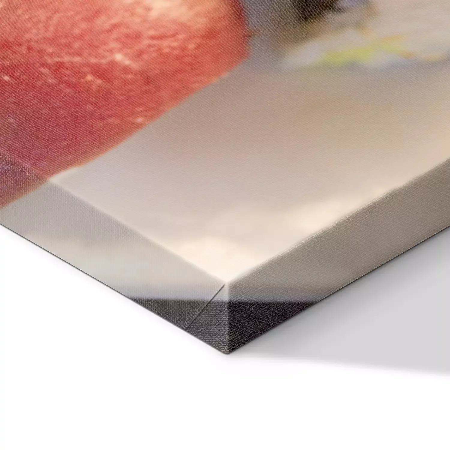 Das Motiv wird auf eine qualitativ hochwertige Leinwand gedruckt, die auf einen Blendrahmen gezogen wird. Da der Aufdruck die Seitenkanten bedeckt, muss das Bild nicht zusätzlich eingerahmt werden. Wir empfehlen außerdem Kompositionen aus mehreren Bildern, die ein harmonisches Ganzes bilden.