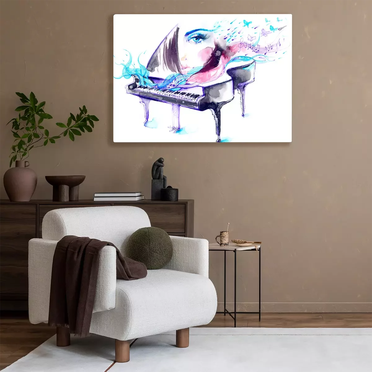 Ein Klavier und abstrakte Aquarellnoten