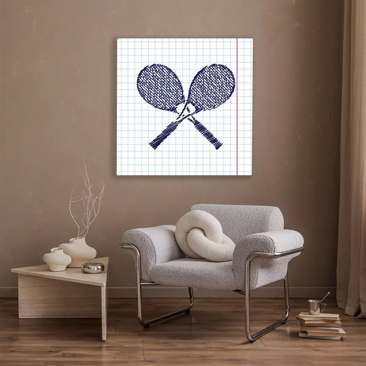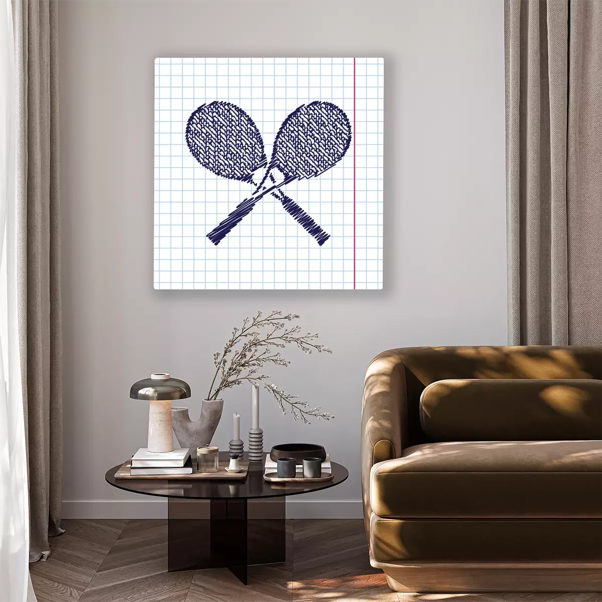Tennisschläger auf kariertem Hintergrund