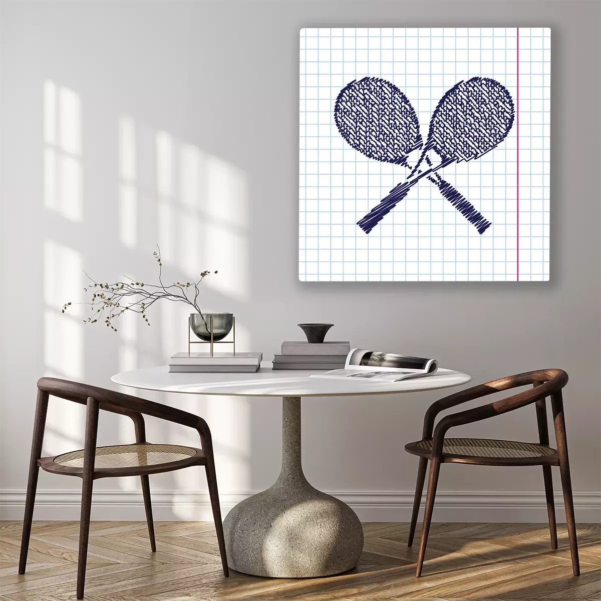 Bild: Tennisschläger auf einem Heftblatt
