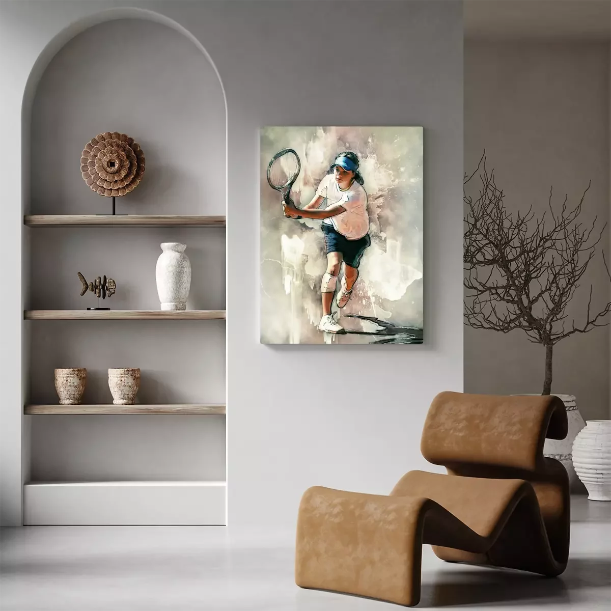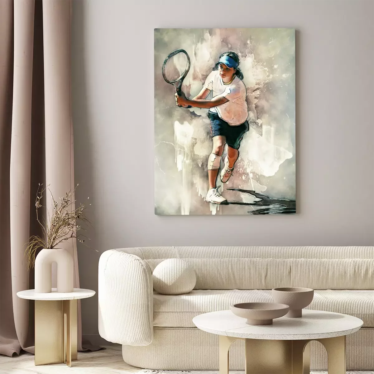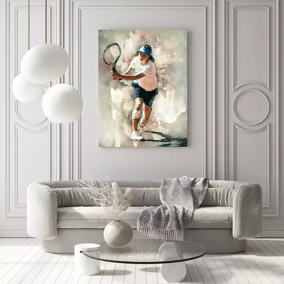 Bild: Tennisspielerin auf Aquarellhintergrund