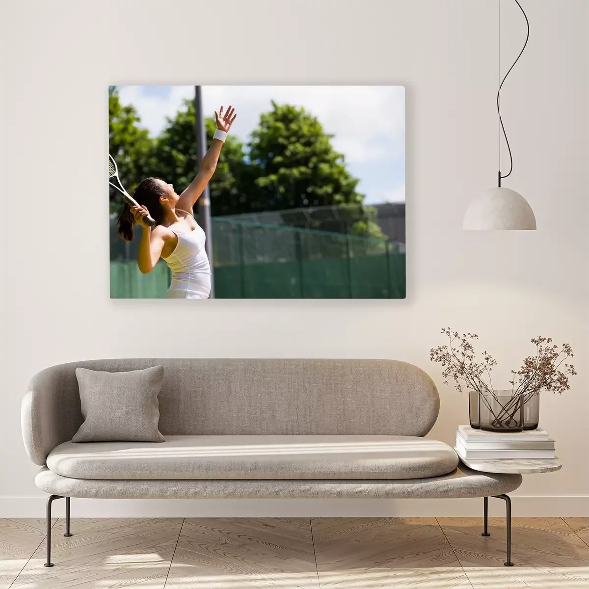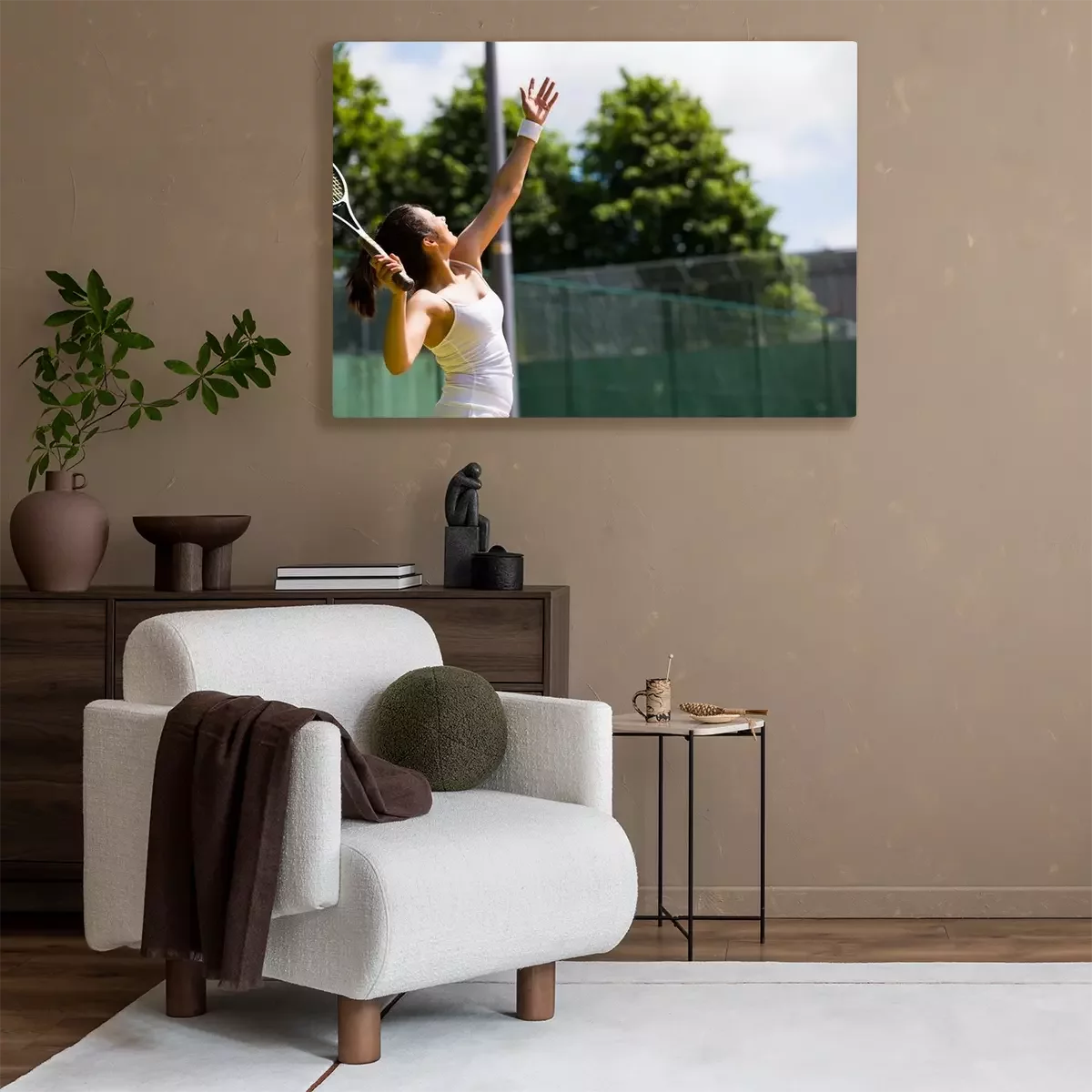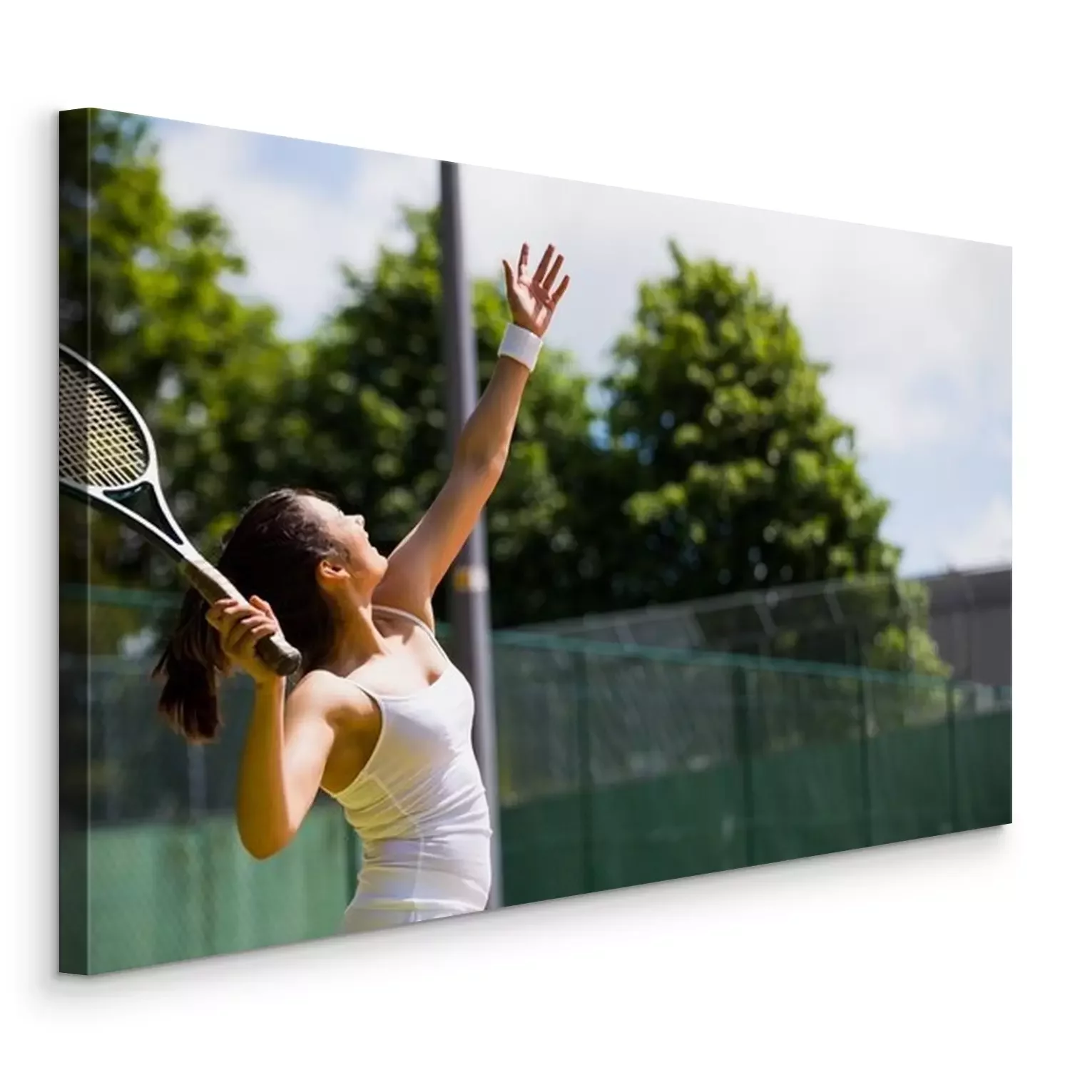 Bild Tennisspielerin mit Bäumen im Hintergrund