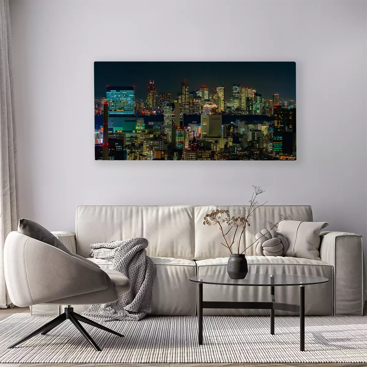 Nächtliches Tokio vor dem Hintergrund des Berges Fuji