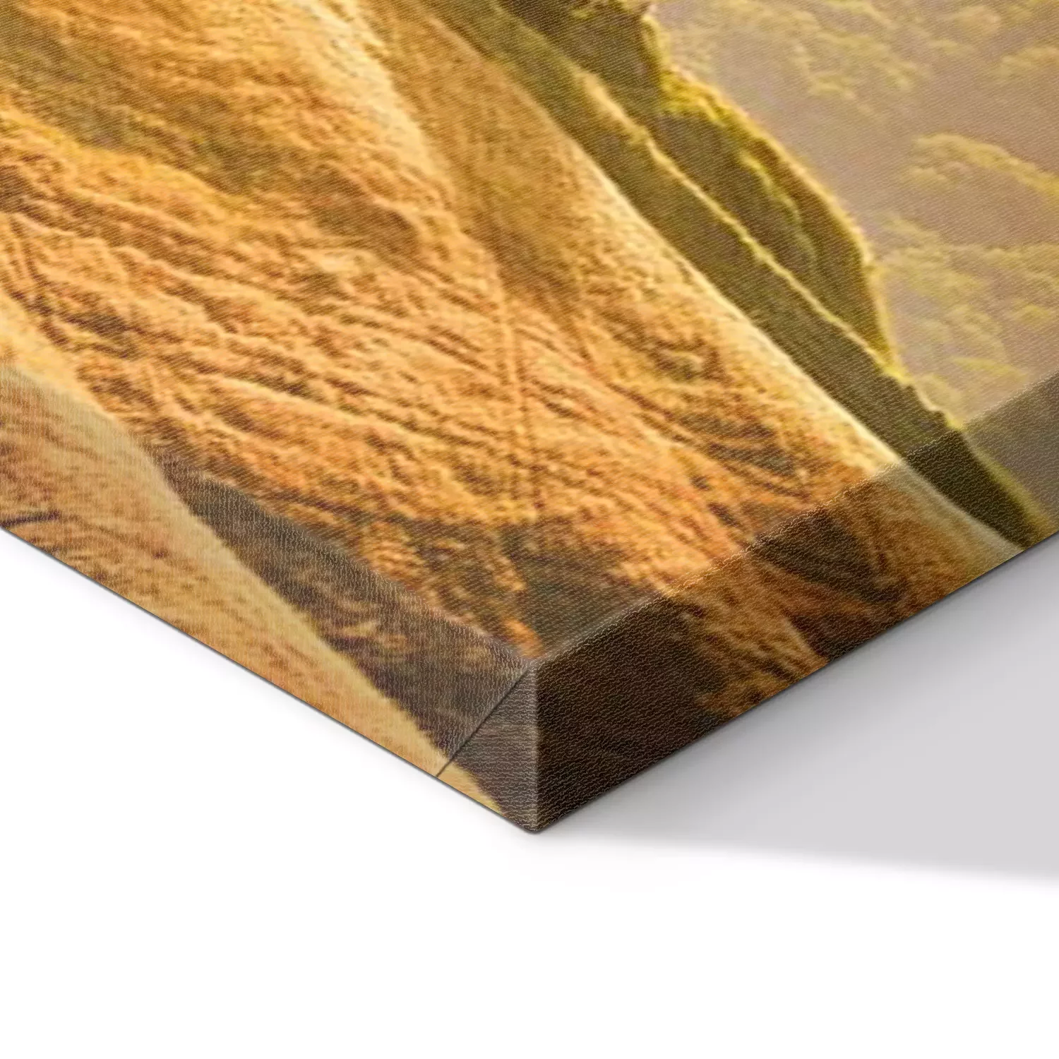 Das Motiv wird auf eine qualitativ hochwertige Leinwand gedruckt, die auf einen Blendrahmen gezogen wird. Da der Aufdruck die Seitenkanten bedeckt, muss das Bild nicht zusätzlich eingerahmt werden. Wir empfehlen außerdem Kompositionen aus mehreren Bildern, die ein harmonisches Ganzes bilden.