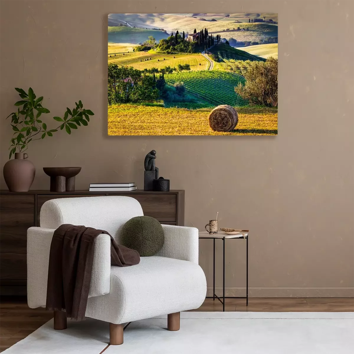 Toskana, Landschaft und Bauernhaus in den Hügeln der Val d'Orcia