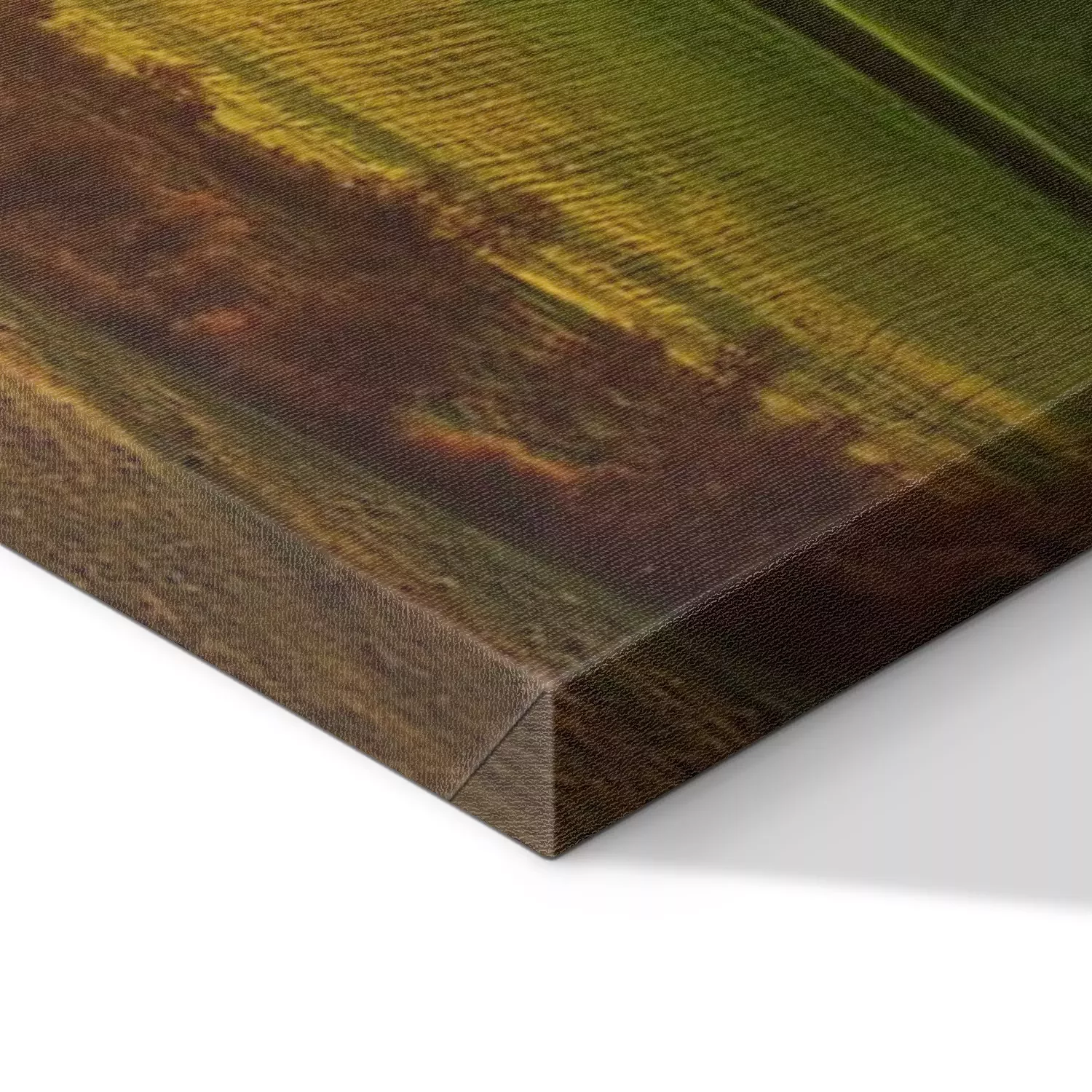 Das Motiv wird auf eine qualitativ hochwertige Leinwand gedruckt, die auf einen Blendrahmen gezogen wird. Da der Aufdruck die Seitenkanten bedeckt, muss das Bild nicht zusätzlich eingerahmt werden. Wir empfehlen außerdem Kompositionen aus mehreren Bildern, die ein harmonisches Ganzes bilden.