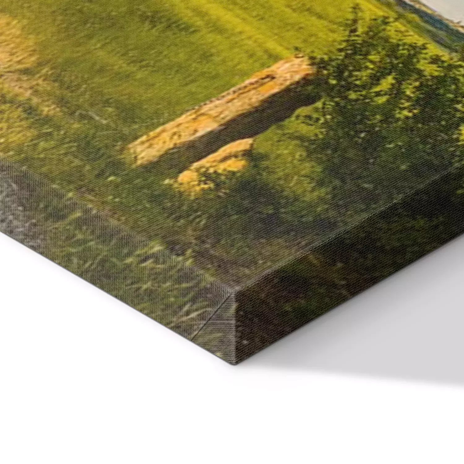 Das Motiv wird auf eine qualitativ hochwertige Leinwand gedruckt, die auf einen Blendrahmen gezogen wird. Da der Aufdruck die Seitenkanten bedeckt, muss das Bild nicht zusätzlich eingerahmt werden. Wir empfehlen außerdem Kompositionen aus mehreren Bildern, die ein harmonisches Ganzes bilden.