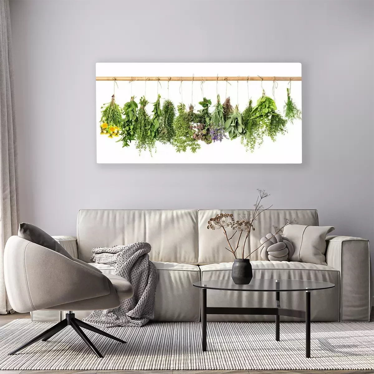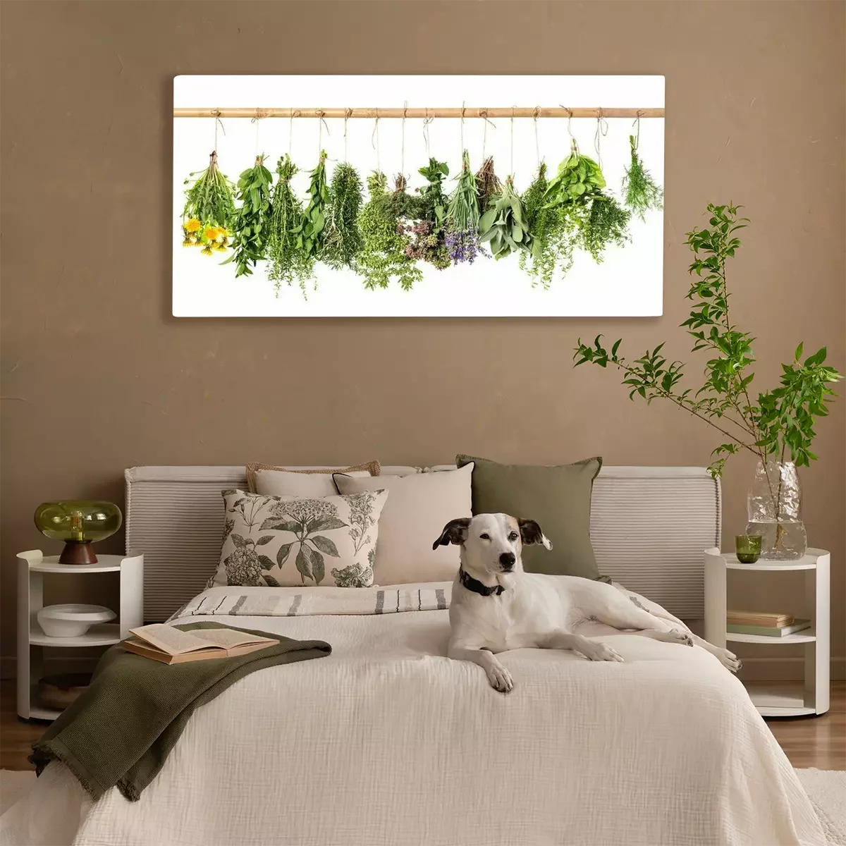 Grüne Kräutersträuße hängen an einem ZweigFototapete