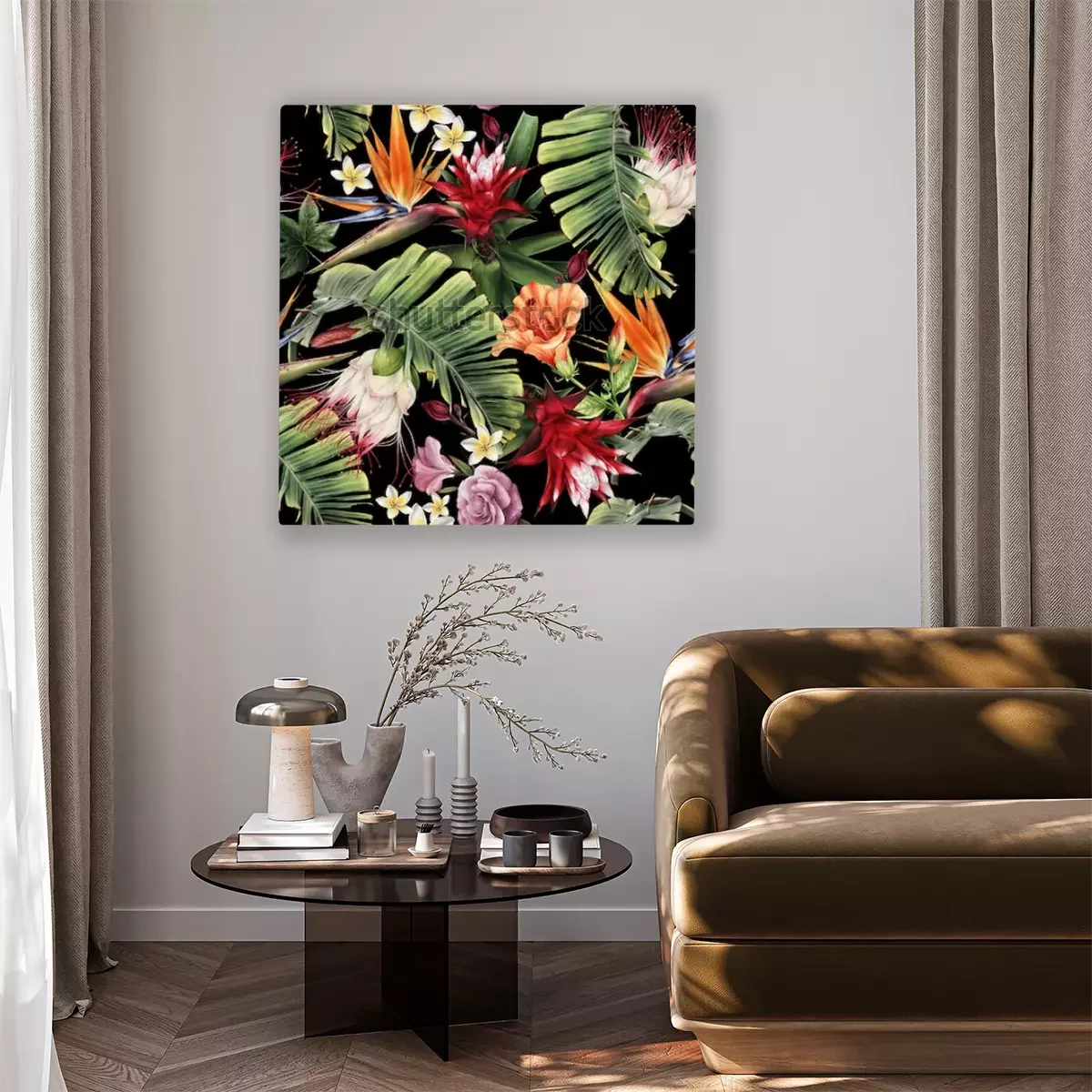 Bild: Tropische Blumen auf dunklem Hintergrund