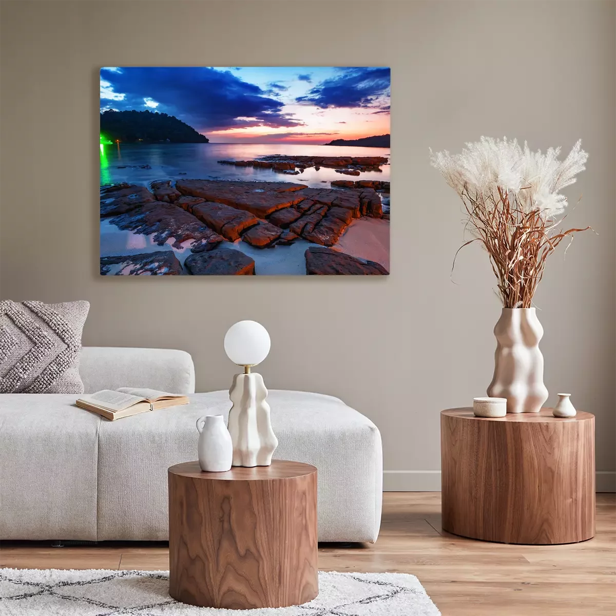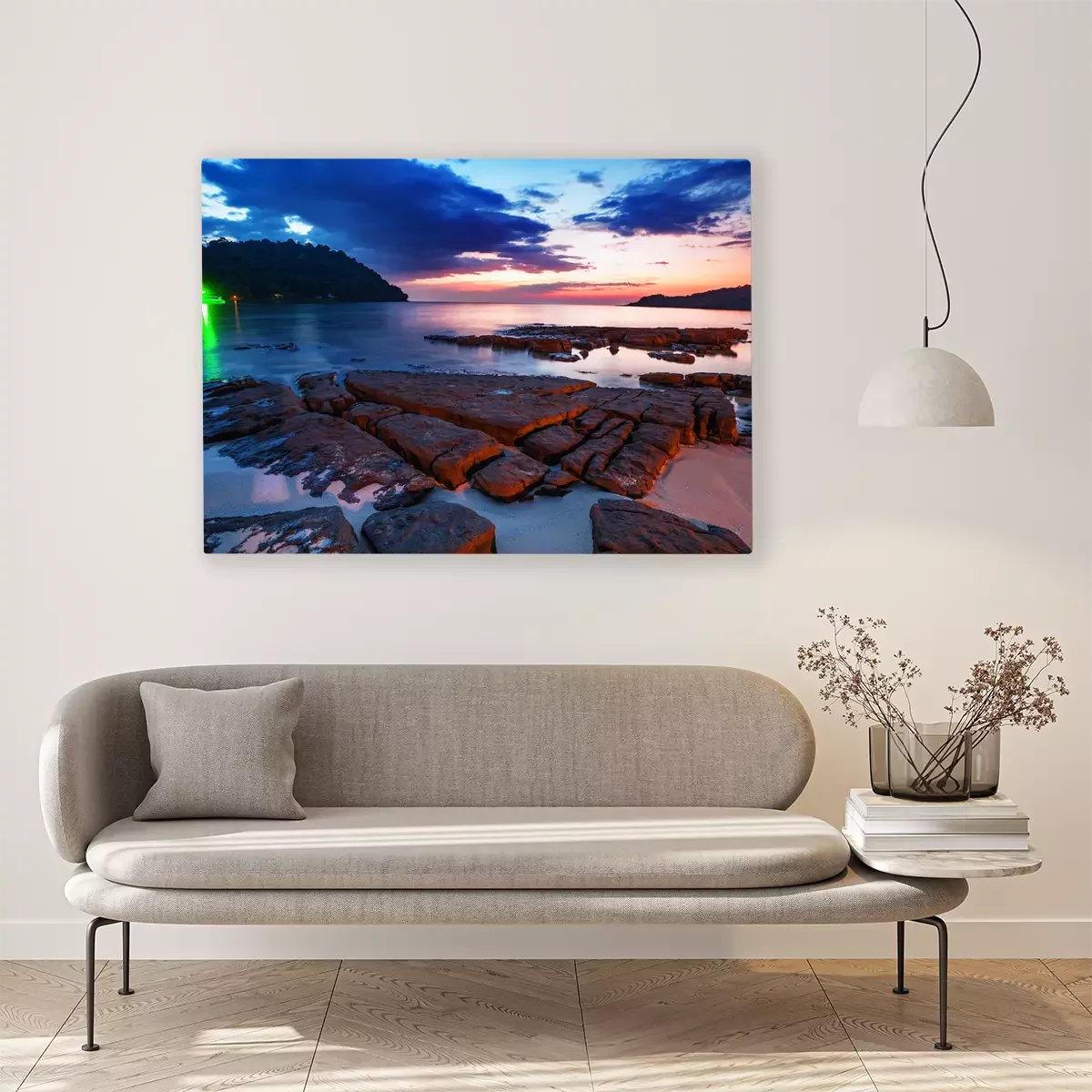 Das Motiv wird auf eine qualitativ hochwertige Leinwand gedruckt, die auf einen Blendrahmen gezogen wird. Da der Aufdruck die Seitenkanten bedeckt, muss das Bild nicht zusätzlich eingerahmt werden. Wir empfehlen außerdem Kompositionen aus mehreren Bildern, die ein harmonisches Ganzes bilden.