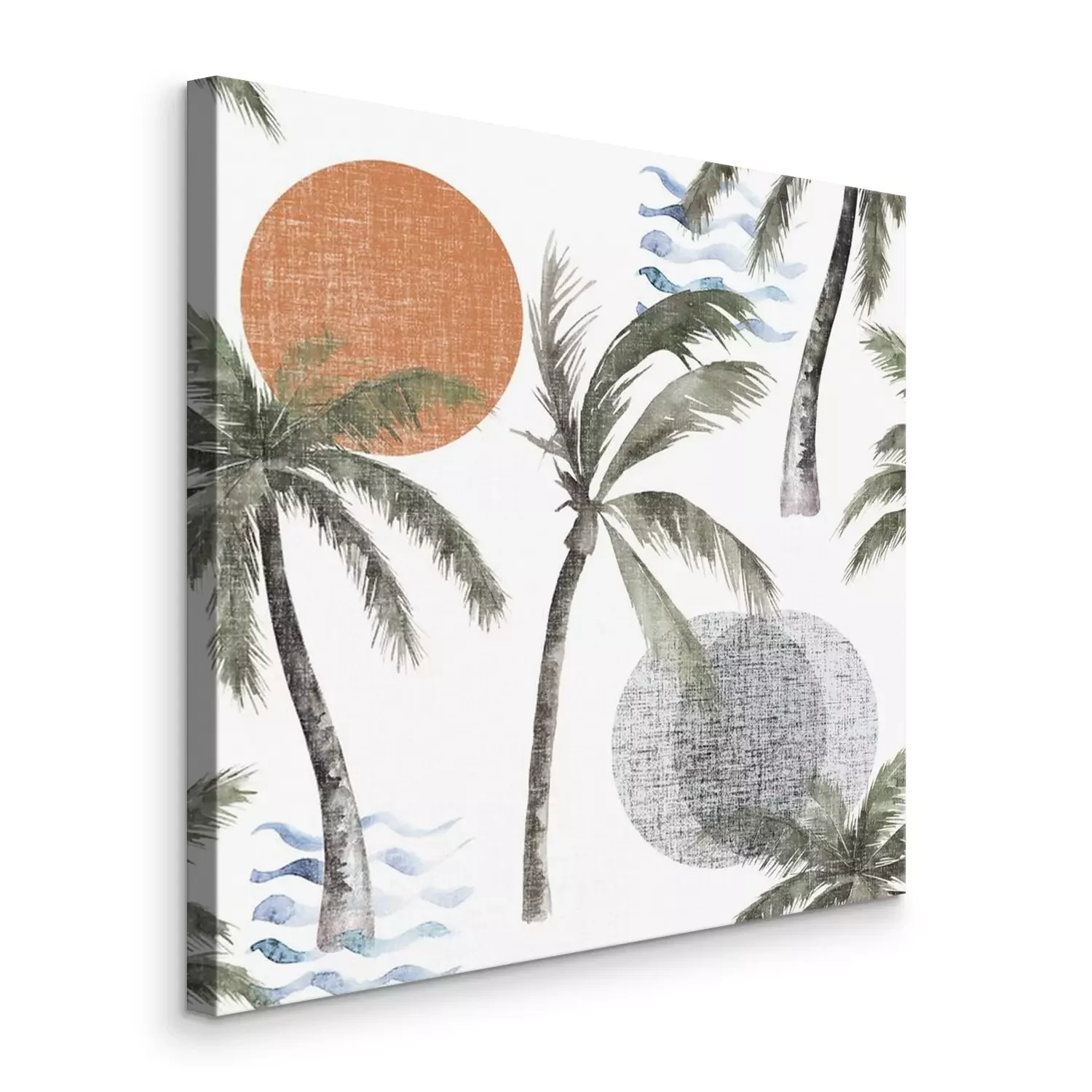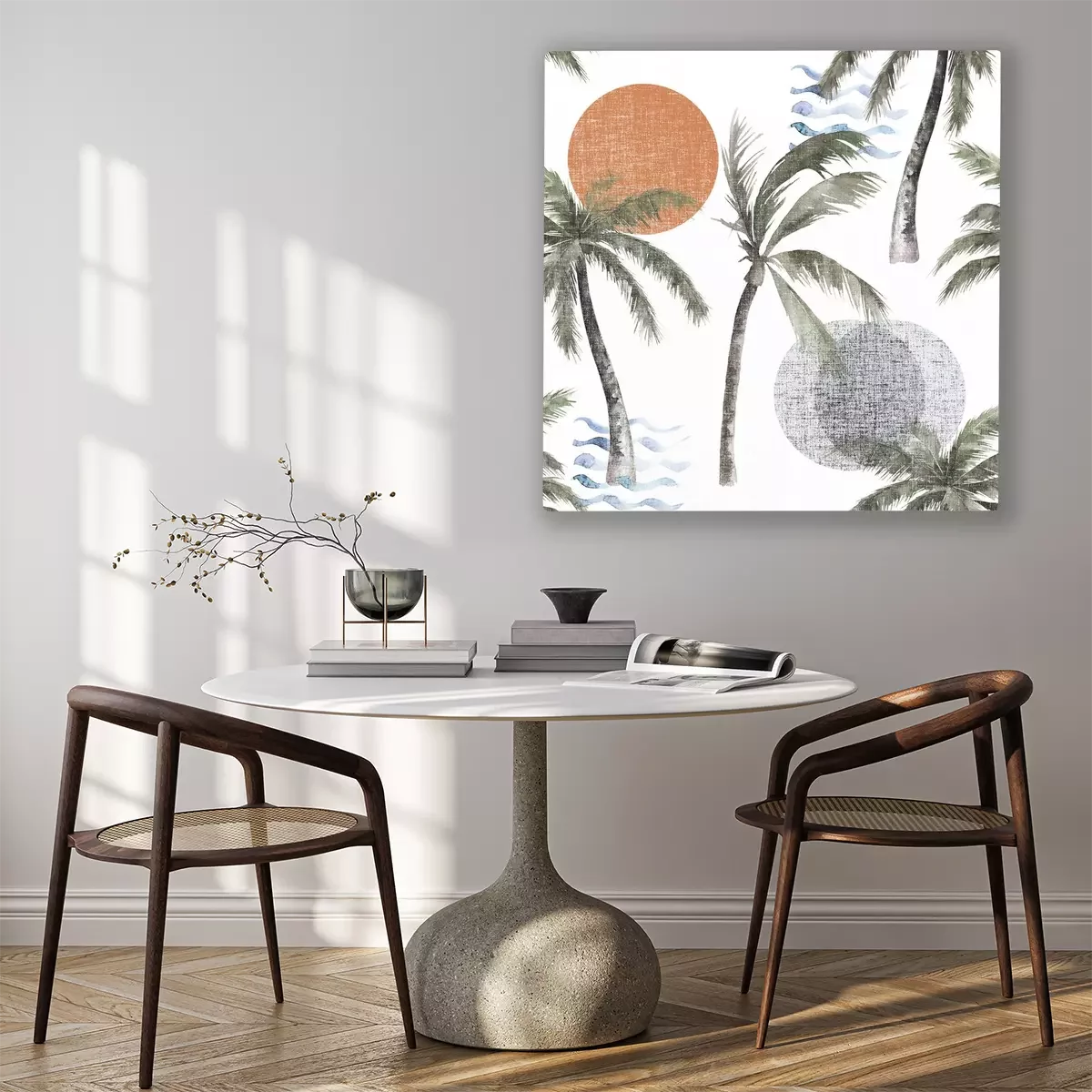 Bild Tropische Palmen und Sonne mit Aquarellfarben gemalt