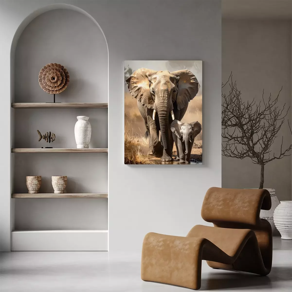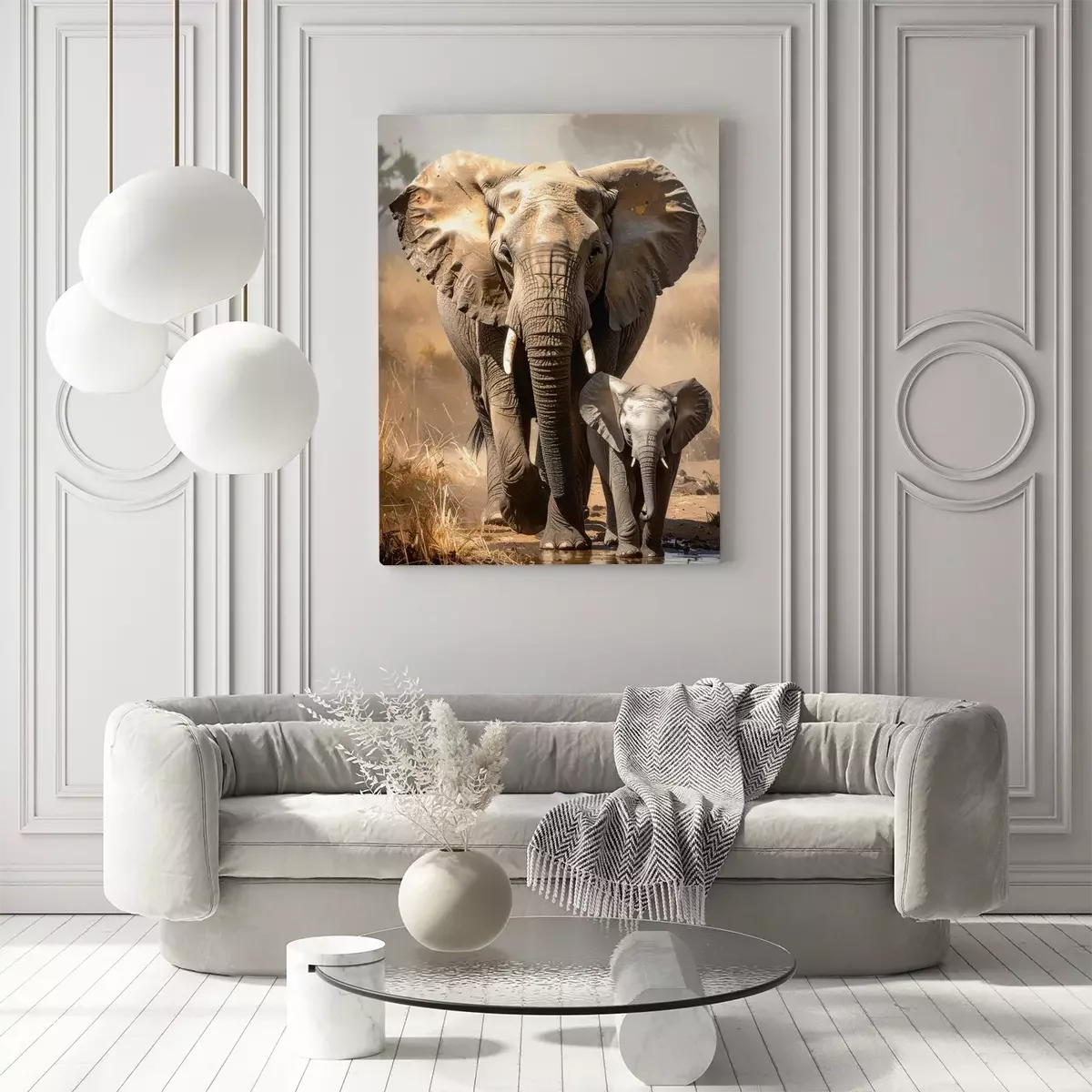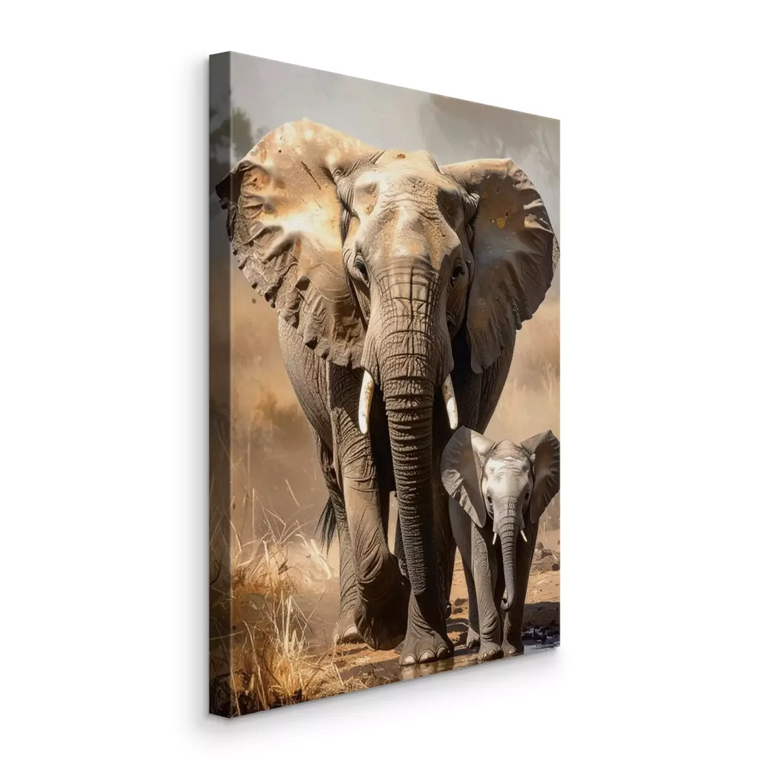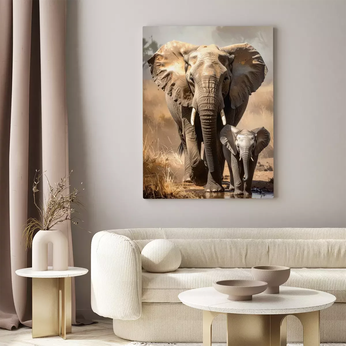 Tropische szene mit einem erwachsenen und einem jungen elefanten