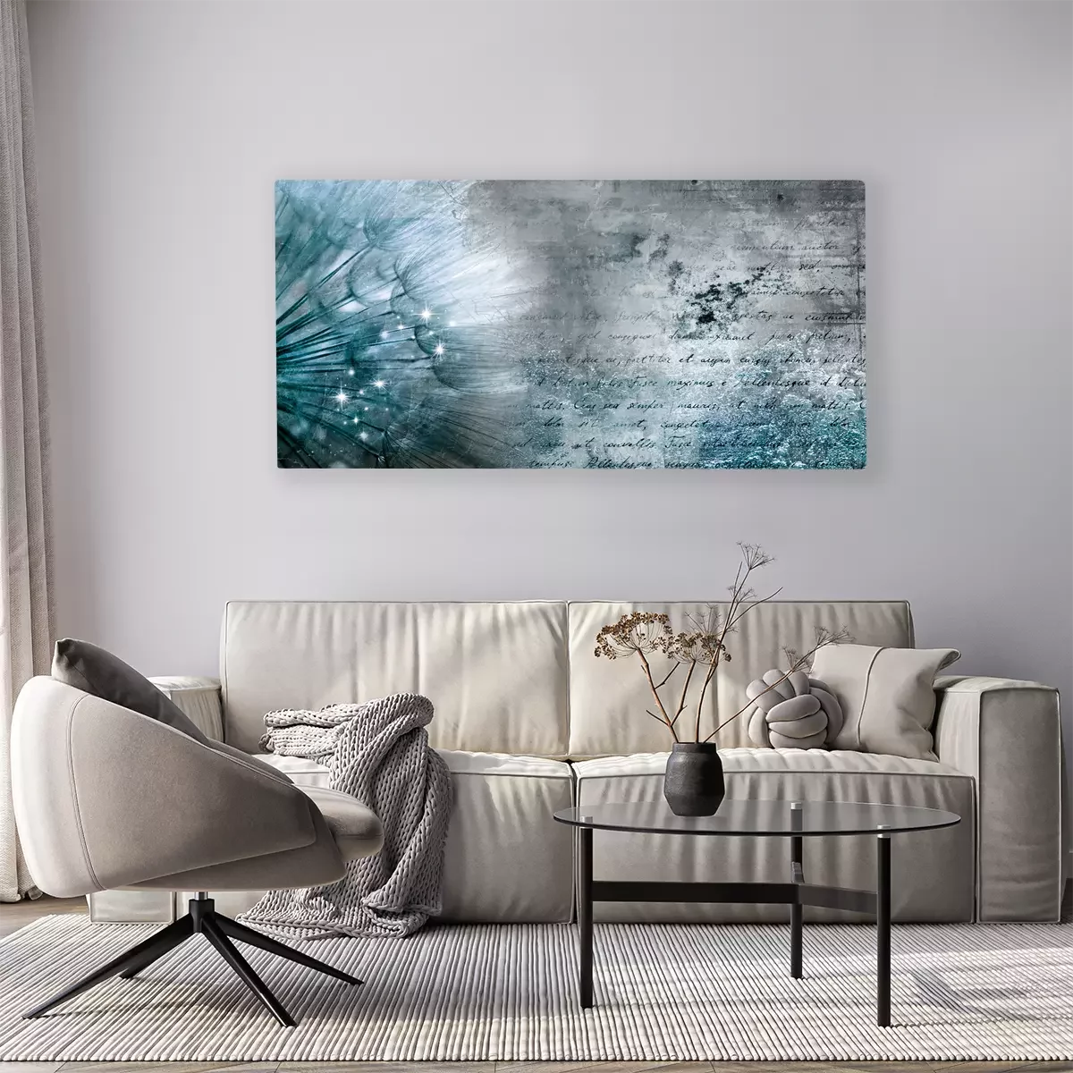 Türkisfarbener und grauer löwenzahn mit glitzereffekt
