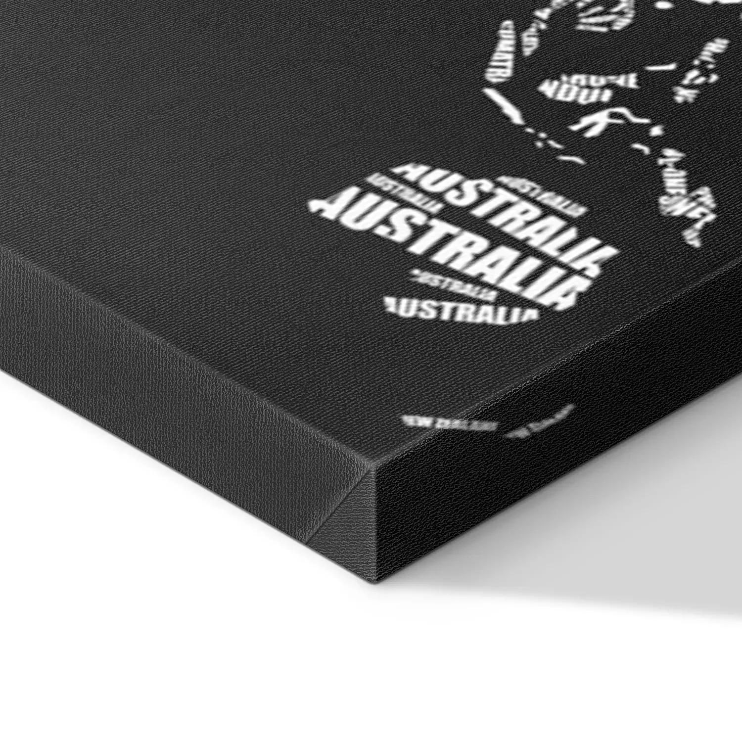 Bild Typografische Weltkarte mit weißer Schrift auf schwarzem Hintergrund