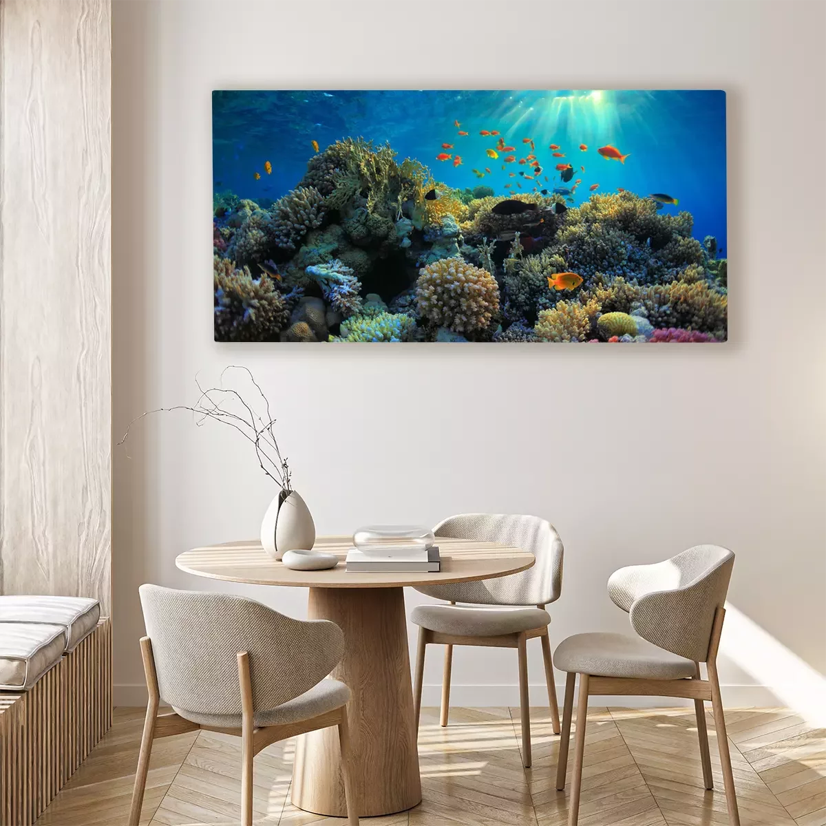 Das Motiv wird auf eine qualitativ hochwertige Leinwand gedruckt, die auf einen Blendrahmen gezogen wird. Da der Aufdruck die Seitenkanten bedeckt, muss das Bild nicht zusätzlich eingerahmt werden. Wir empfehlen außerdem Kompositionen aus mehreren Bildern, die ein harmonisches Ganzes bilden.