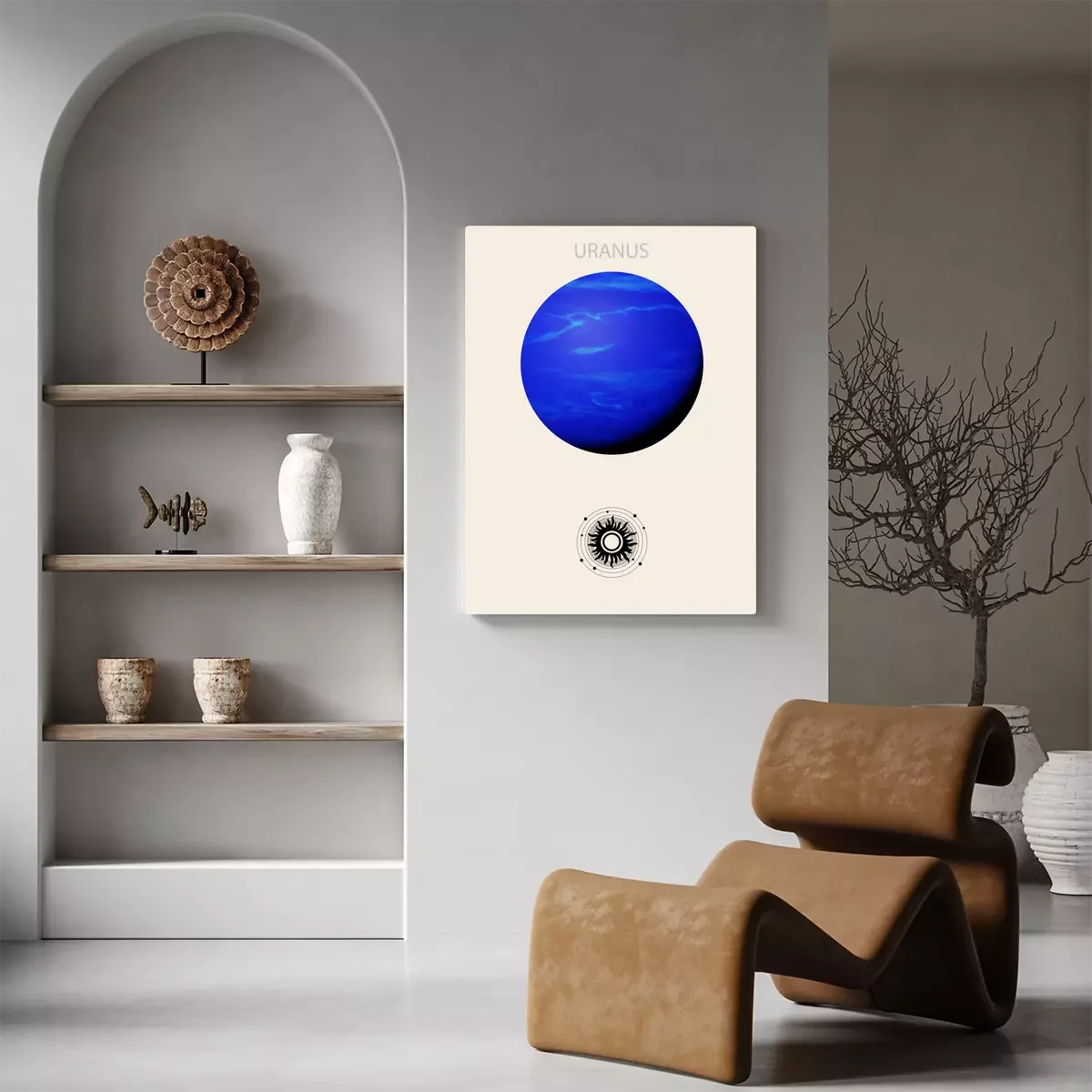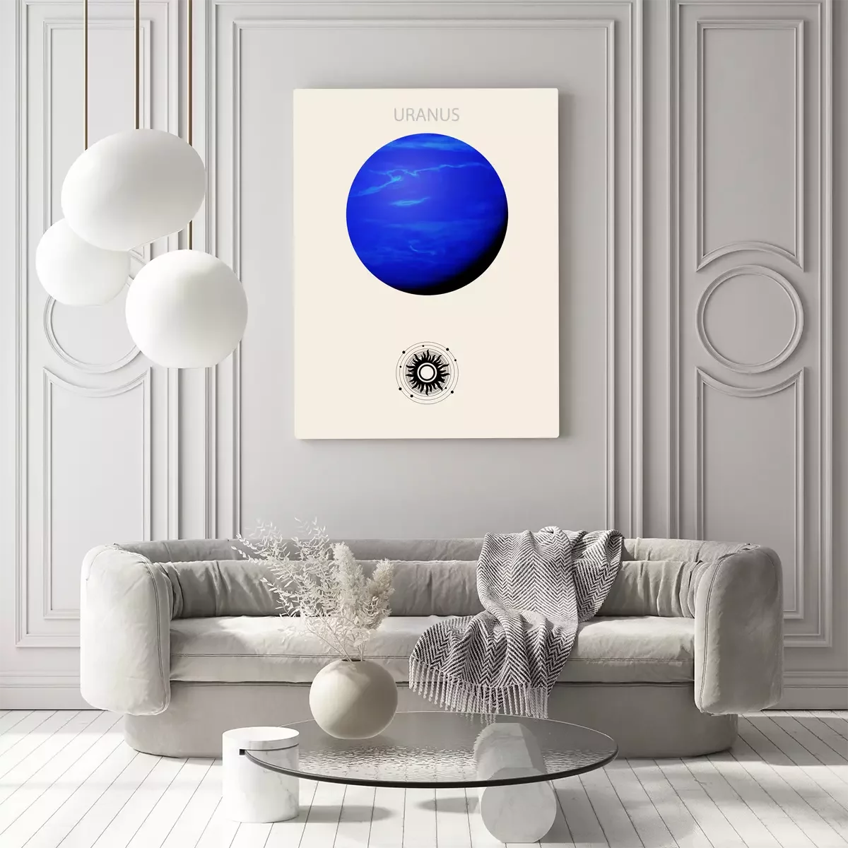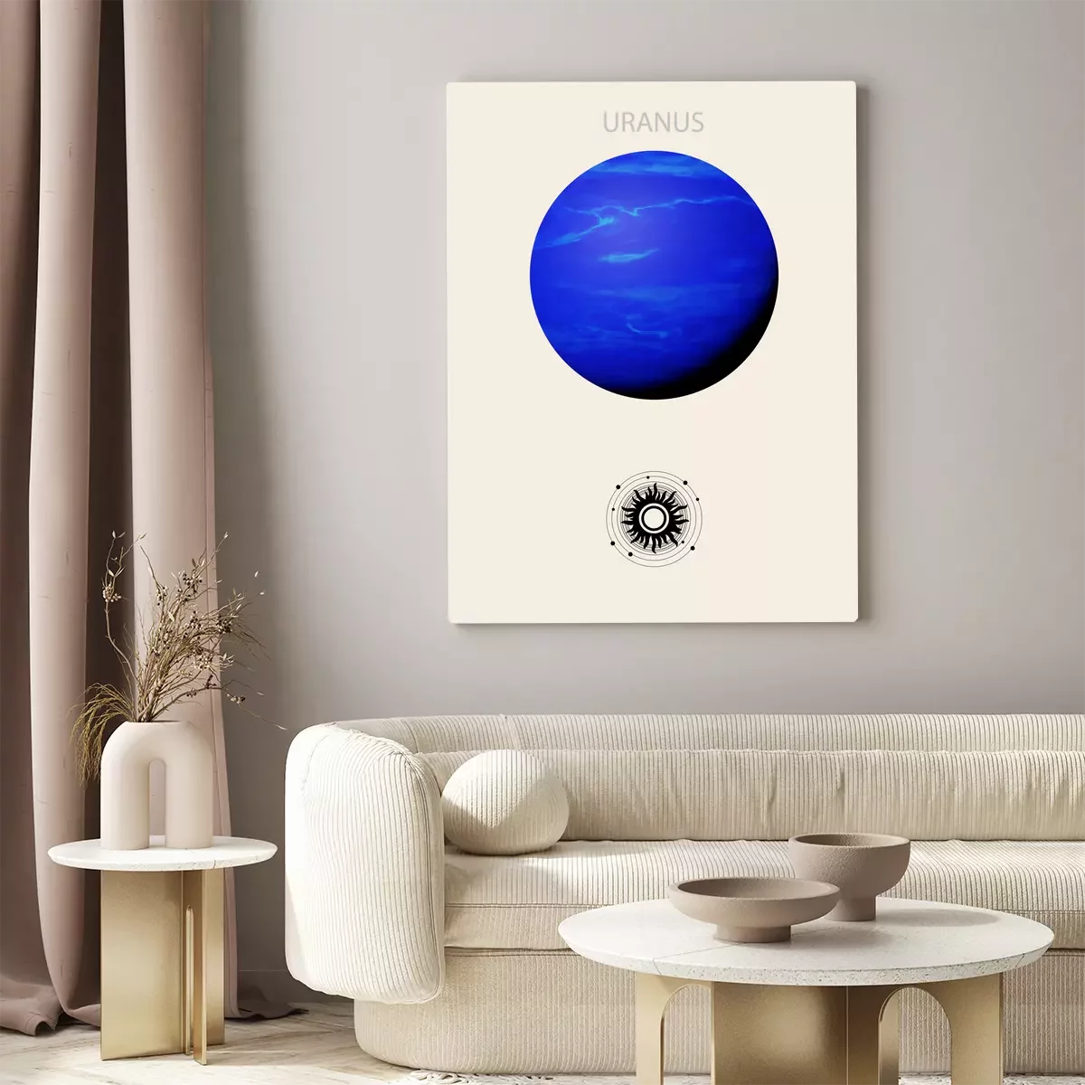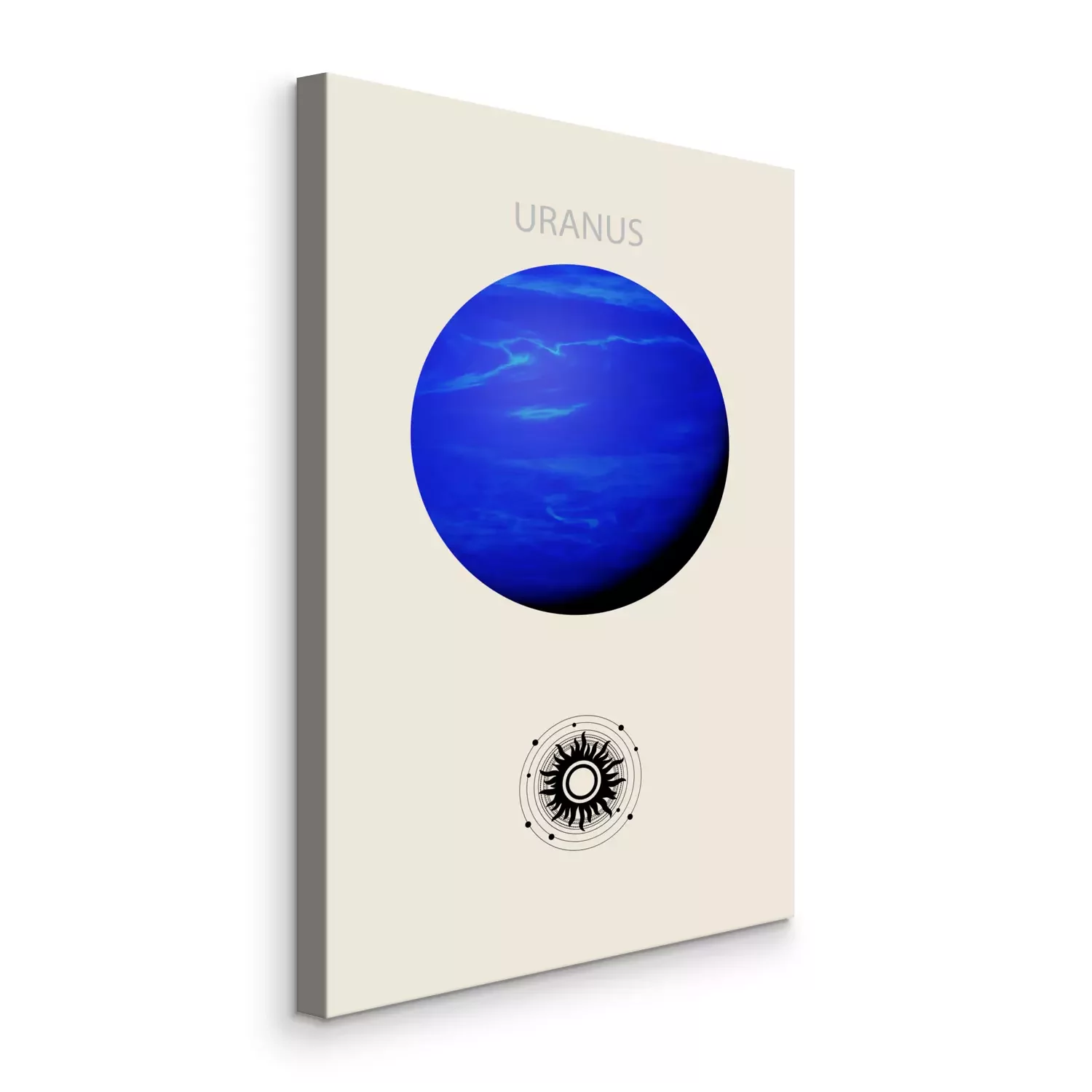 Uranus, der blaue planet, vor beigem hintergrund