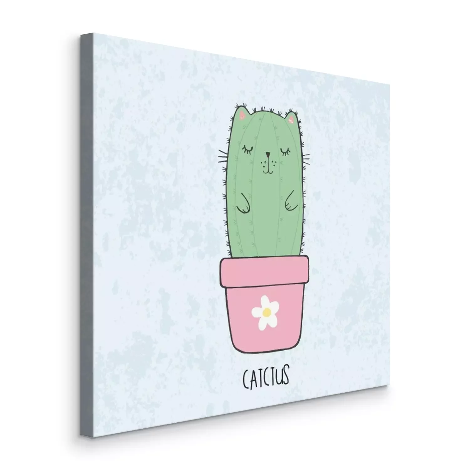 Bild: Vector illustration of hand drawn sketch cute kawaii cat cactus in a flowerpot with flower in anime style with lettering catctus