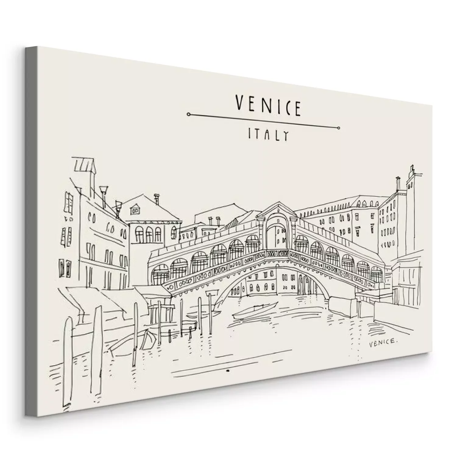 Bild Venice, Italy, Europe. Famous Rialto bridge across Grand canal. Travel sketch. Artistic hand drawing. Vector hand drawn postcard, poster, artistic book, calendar or travel booklet illustration