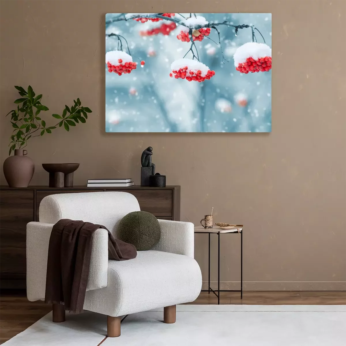 Bild: Verschneiter Vogelbeerbaum im Park