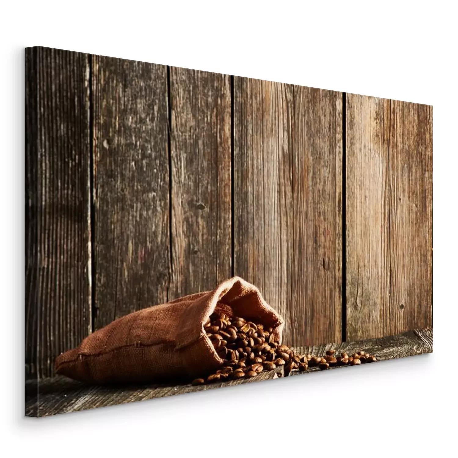 Bild: Verschüttete Kaffeebohnen auf Holz